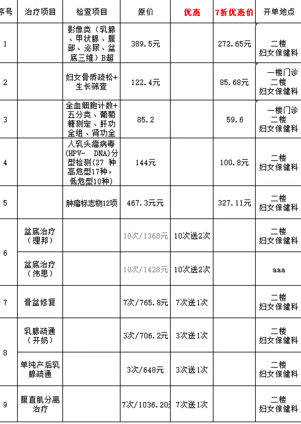 早孕建卡:免费测量身高、体重、血压、心肺听诊、妇科检查(怀孕后建卡是为了方便了解孕期检查的情况,可以把产前检查的资料统一存放档案方便查阅,孕期建卡有利于动态观察胎儿的生长发育情况和孕妇的健康状况)。