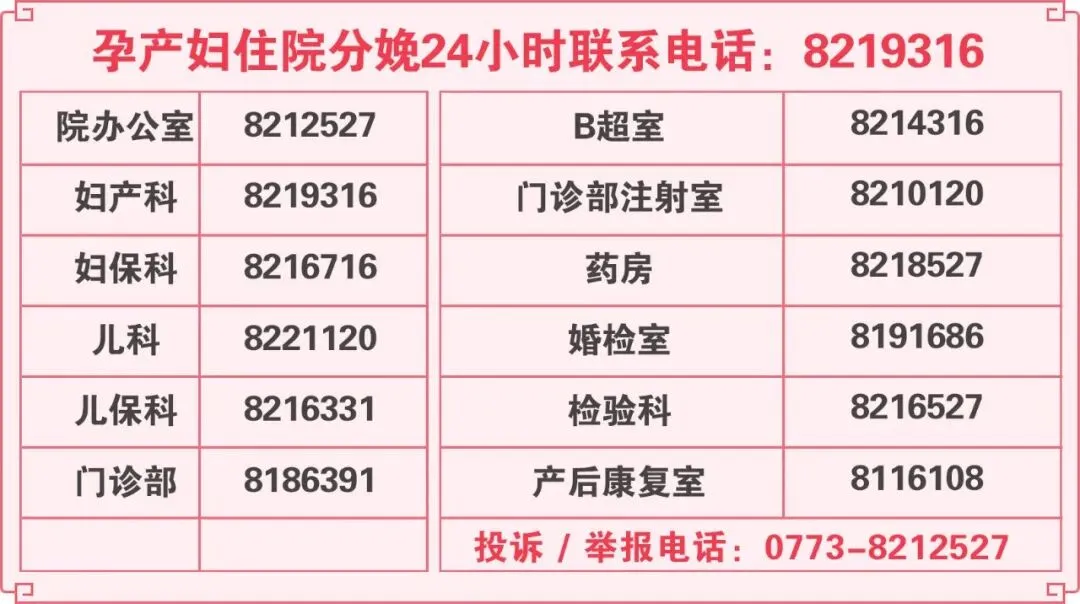 预约电话:0773-8216716(妇保科)