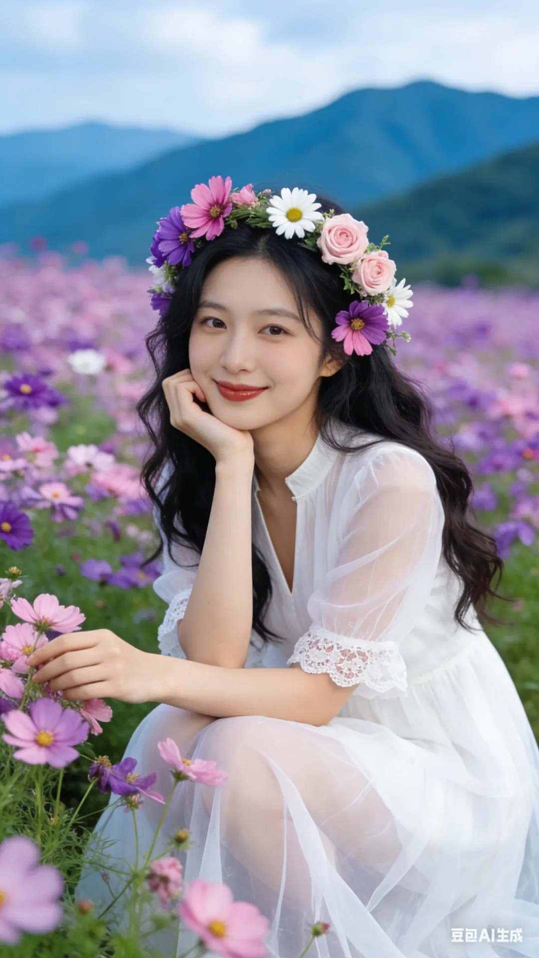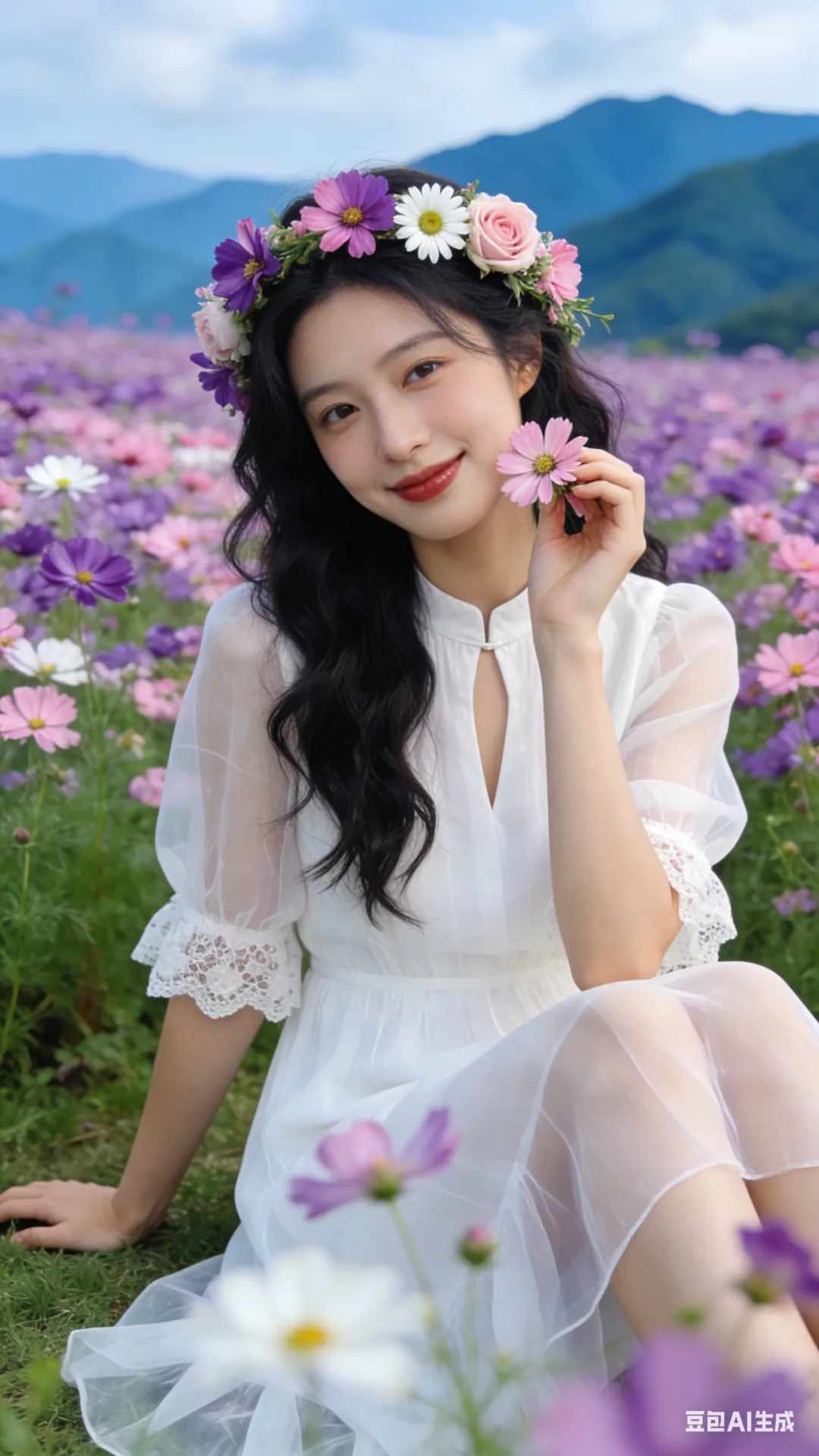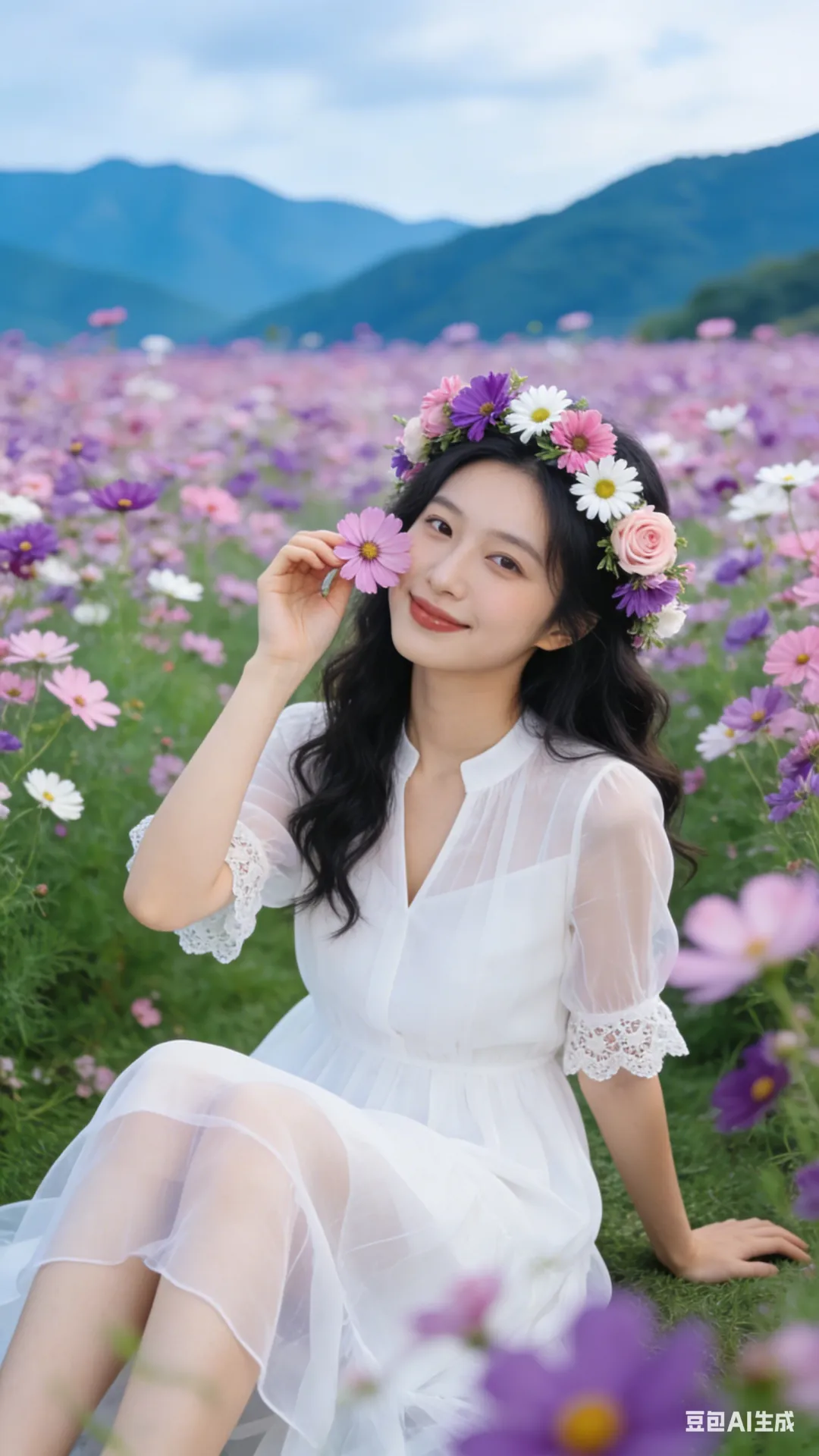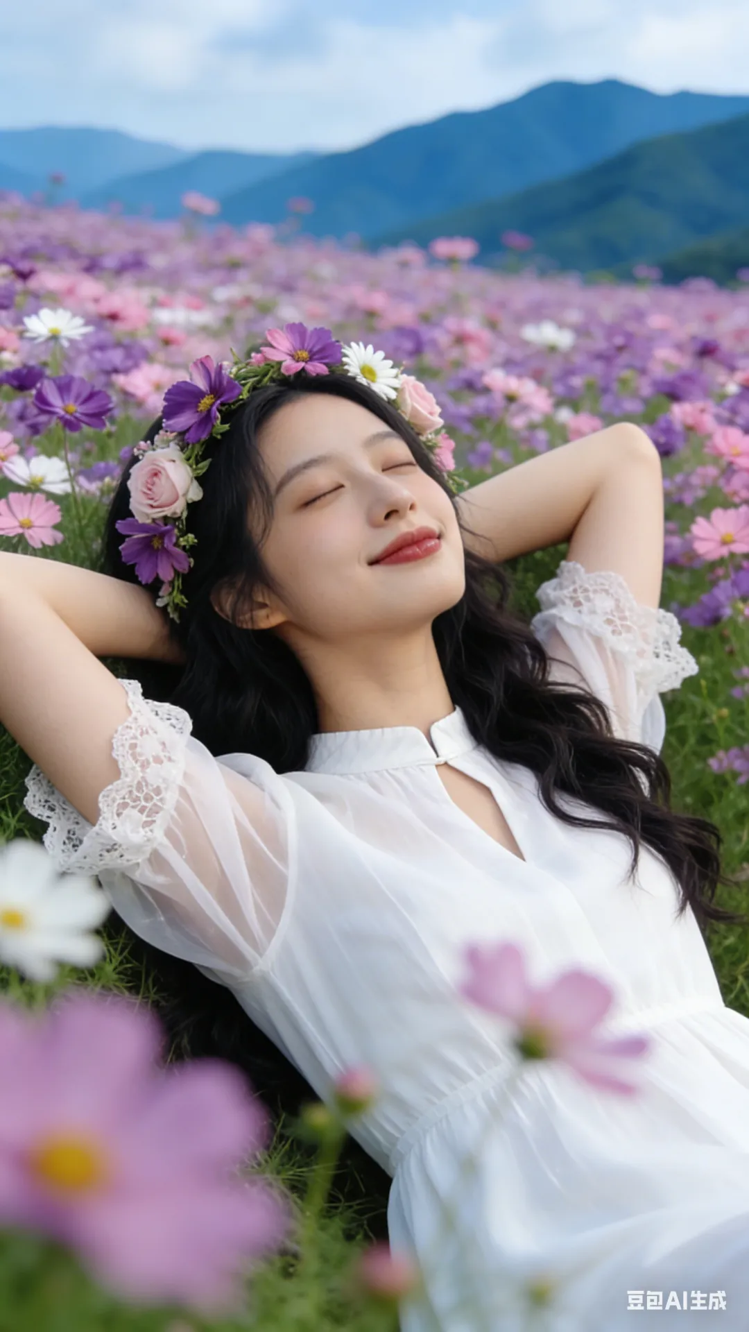从素人到模特:AI写真提示词分享之格桑花海写真,一键复制立刻拥有氛围感大片