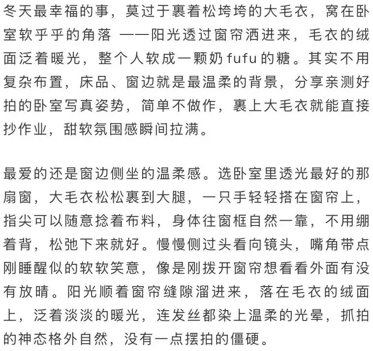 当前位置:首页>美女资讯>裹件大毛衣,软成奶糖妹,卧室写真拍照技巧