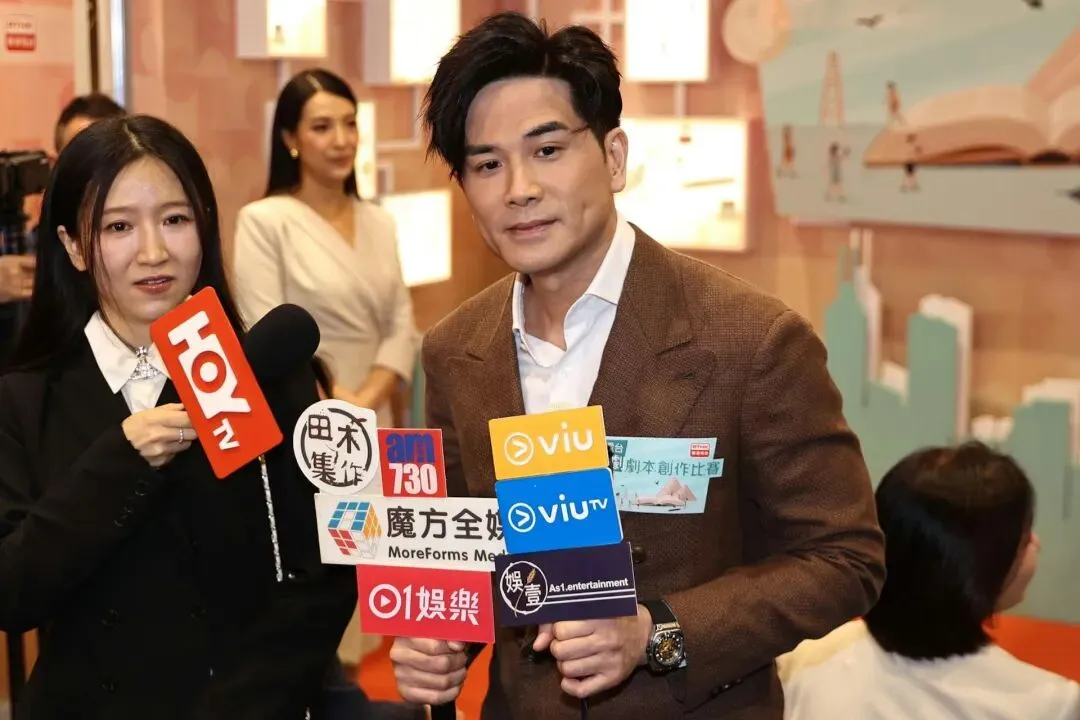 伍允龍出席香港電台活動時接受訪問。 (陳順禎 攝)