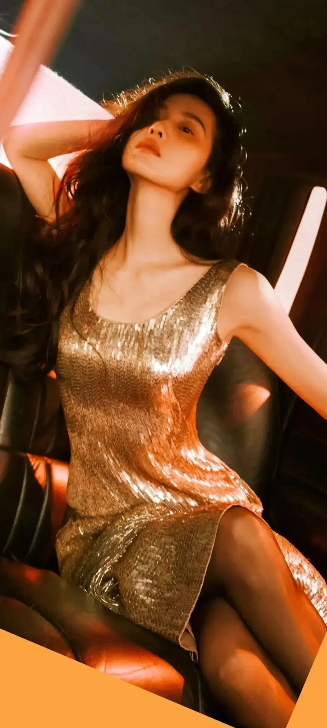 刘诗诗穿着金色衣裙,她俏脸扬起,单手抚弄秀发,露出大美腿,在灯光照射下,大秀曼妙身材曲线,有一种别样的性感妩媚!