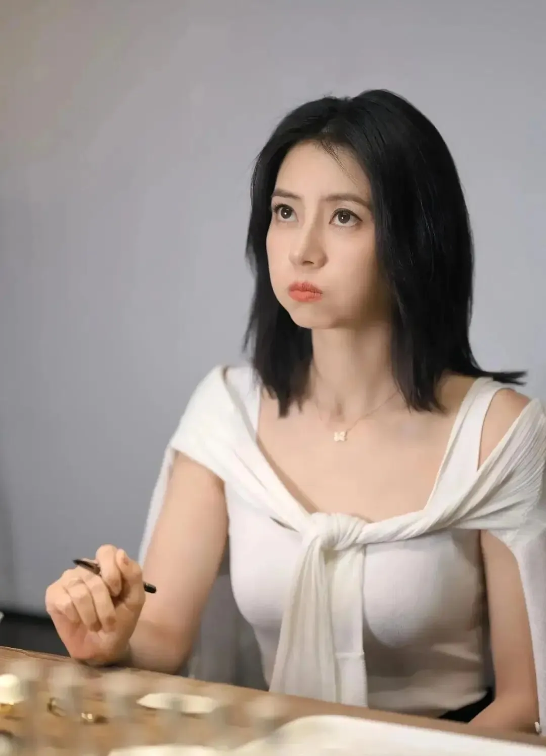 高圆圆穿着一袭吊带蓝色衣裙,她俏脸明媚,单手撩着自己的脖子,大秀自己的曼妙身材曲线,绝对性感迷人!