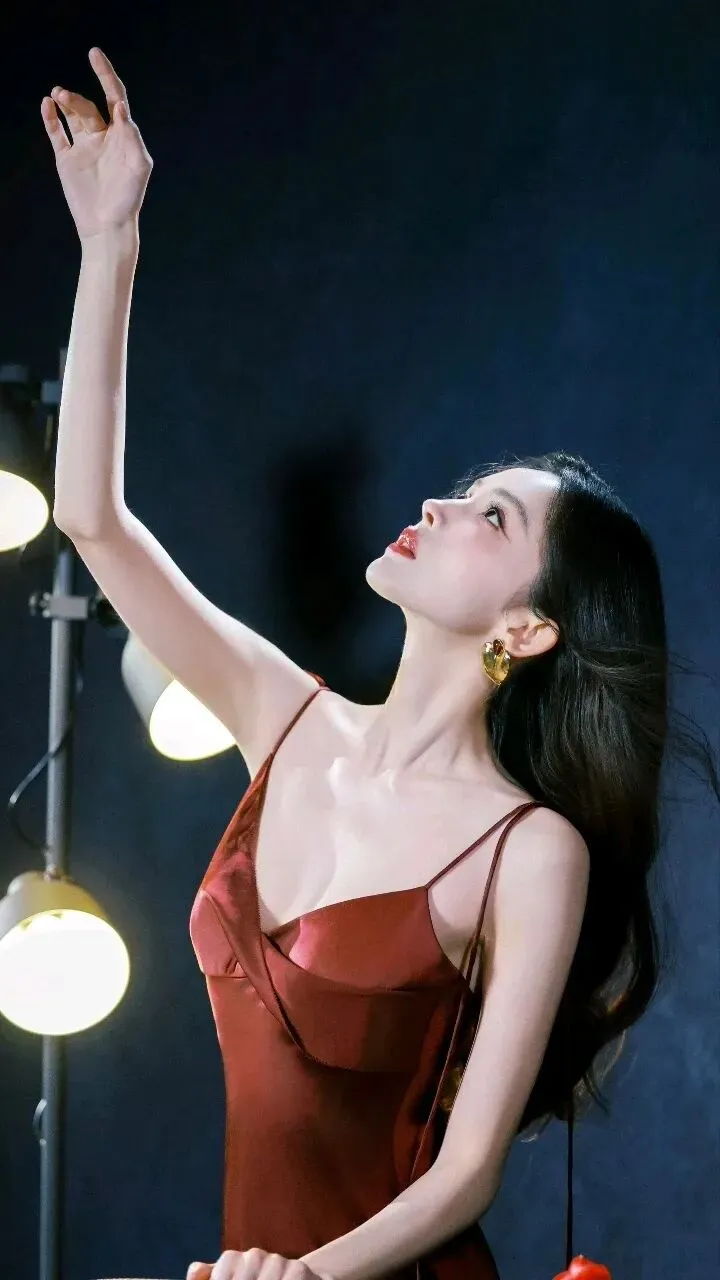 光影在这场独白中扮演着诗意的翻译者。暖黄色的灯光串成珠帘,在她抬起的臂弯间流淌;侧逆光勾勒出发丝的轮廓,每一根都镀上金边;面光柔和地抚过五官,让表情在明暗交替中显得层次丰富。