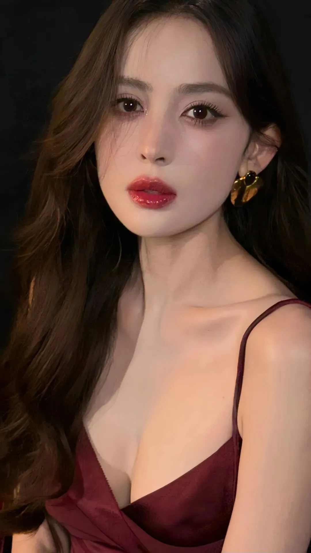 她或坐或立,姿态从容如古画中的仕女,眼神却带着现代诗般的锐利与清醒。这种矛盾的美,让画面产生了奇妙的张力——古典的形,当代的魂,在红与黑的交响中达成完美的和解。