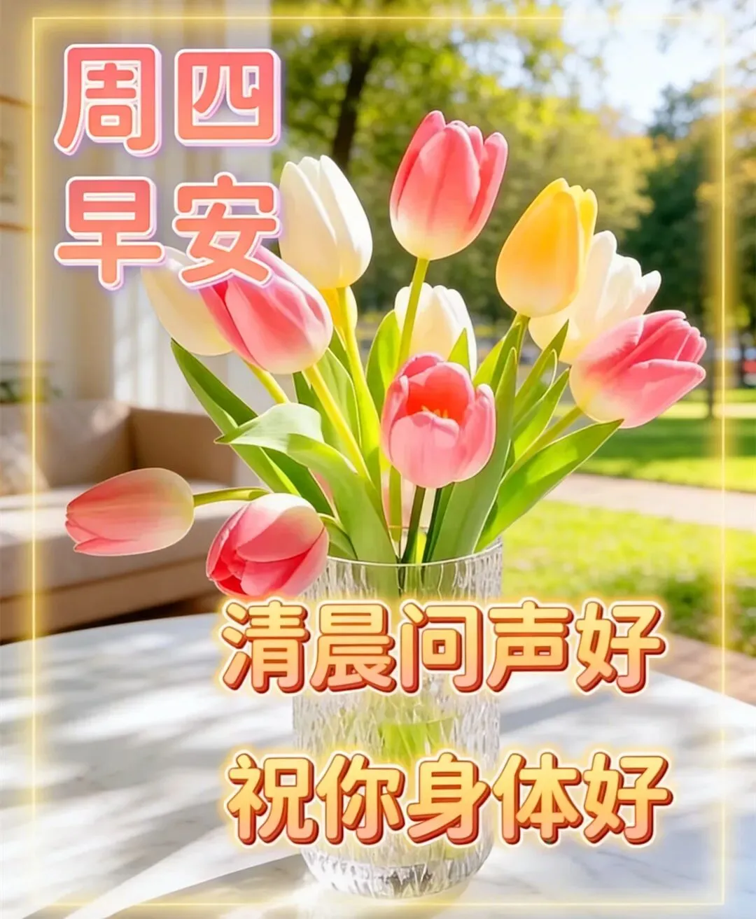 我把最好、最真诚的祝福献上,不是今天,而是每一天。愿我们一年四季,季季平安;12个月,月月健康;52周,周周精彩;365天,天天快乐!周四早上好!