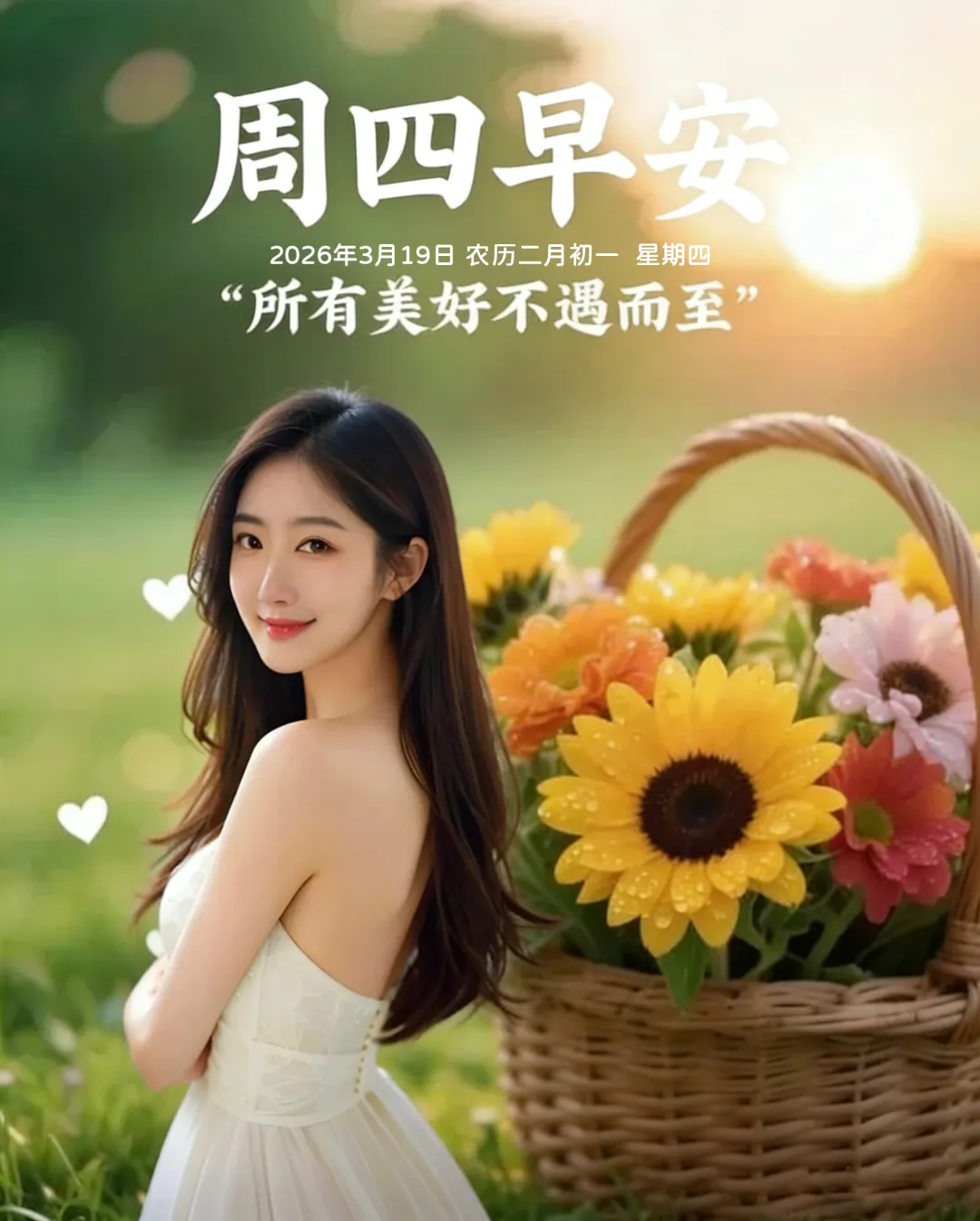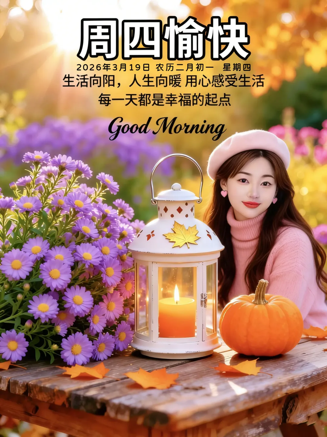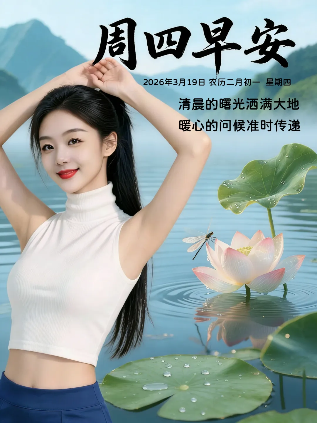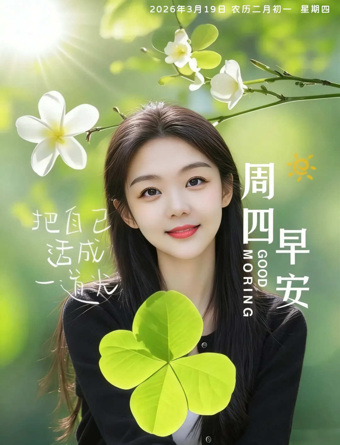 3月19日-星期四美女早安图片 周四早安祝福图片