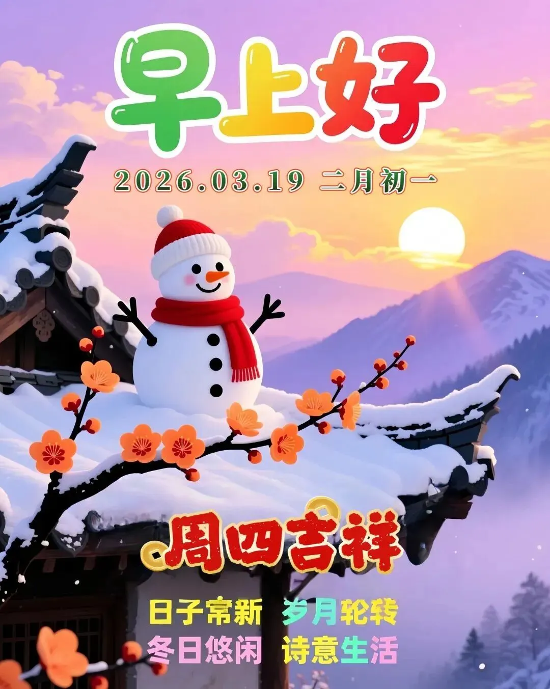 一年之计在于春,一天之计在于晨。早上敞开祝福门,问候早早添精神!周四愉快!