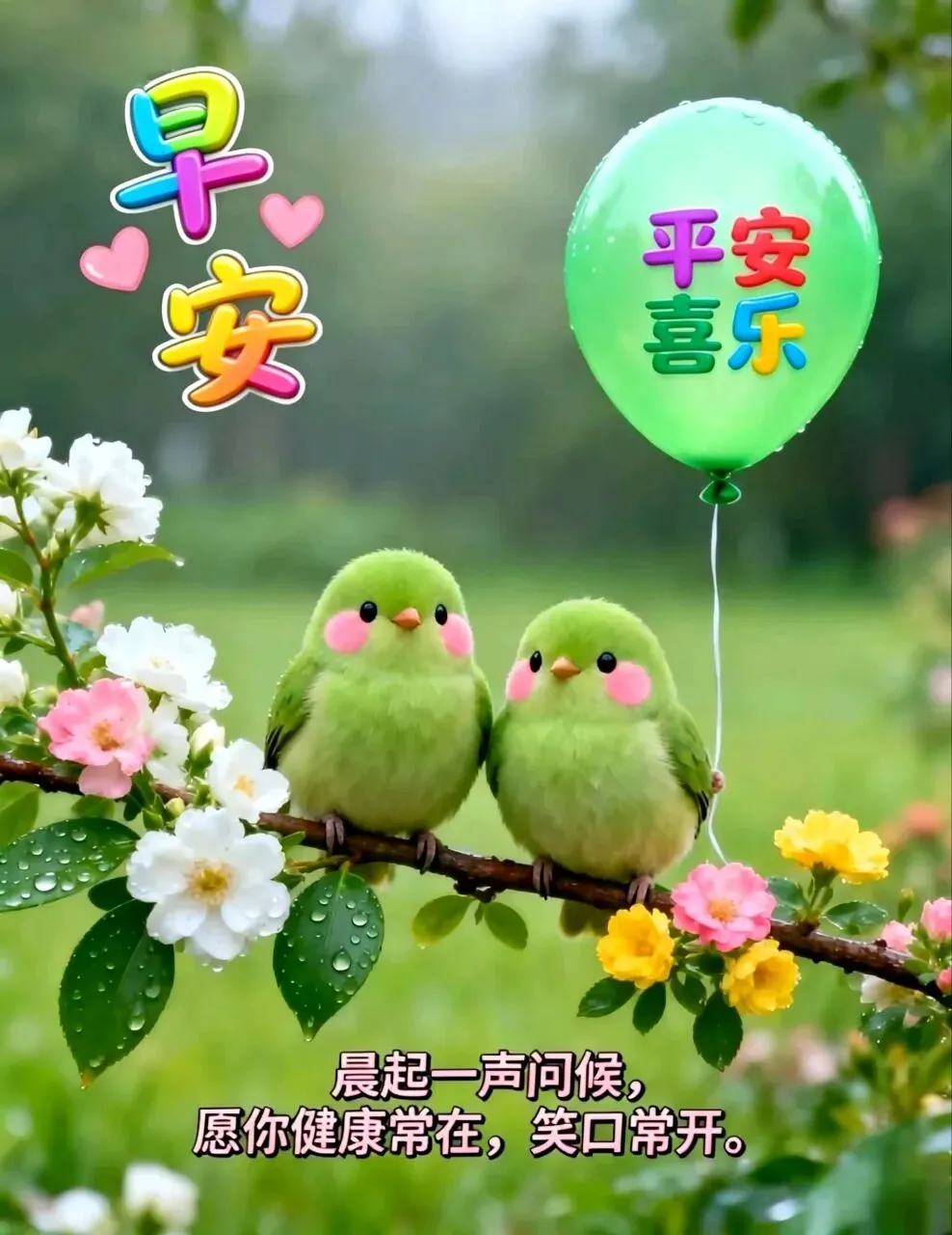 🎊暖暖阳光照,鸟语花香绕,温馨祝福到,盼友烦恼消!愿大家心存感恩,带着幸福与美好,迎接每一个崭新的今天!早安!