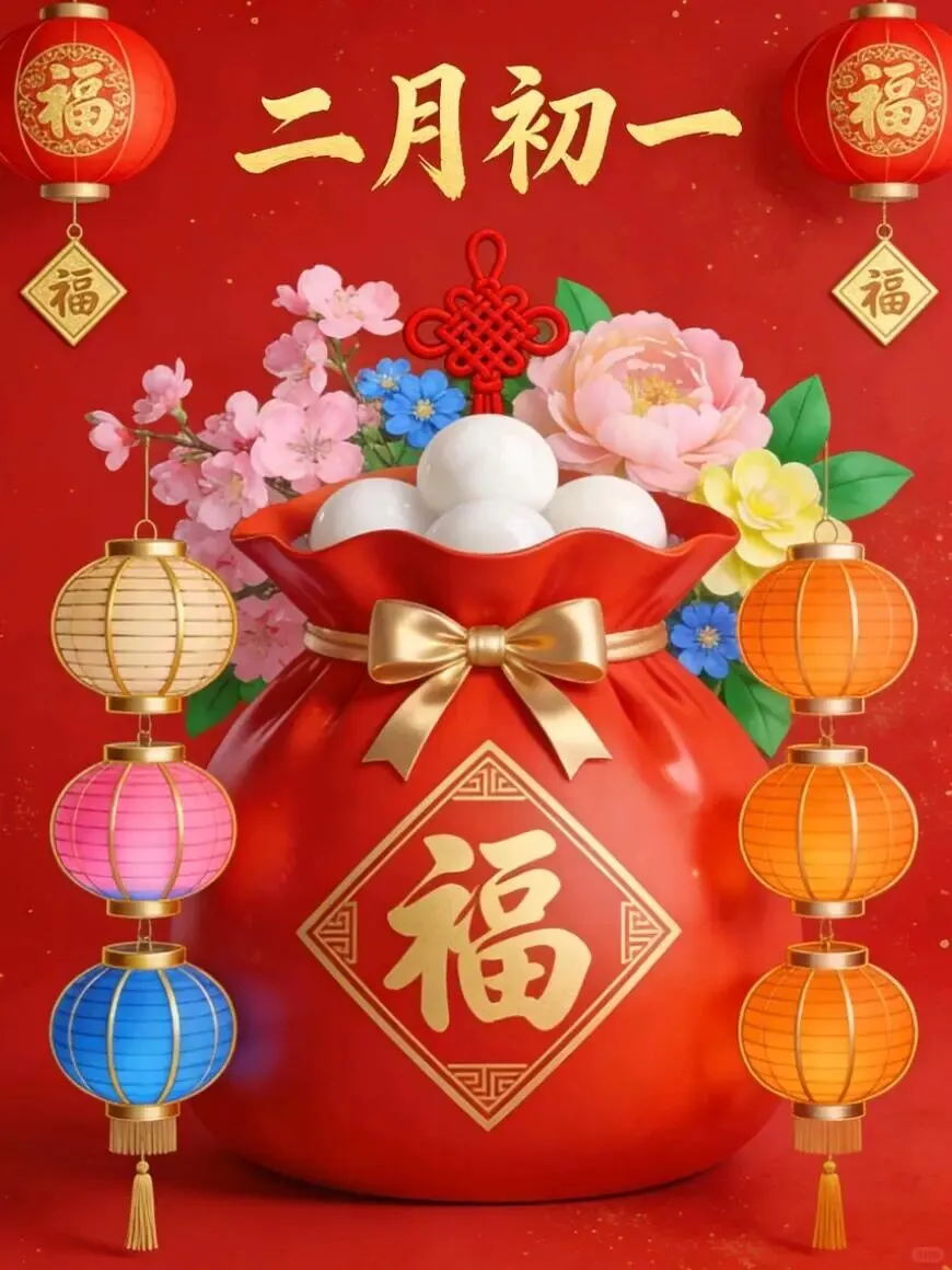 二月初一,愿你身体健健康康,家庭和和美美,事业红红火火,好运滚滚而来,每天开开心心的。