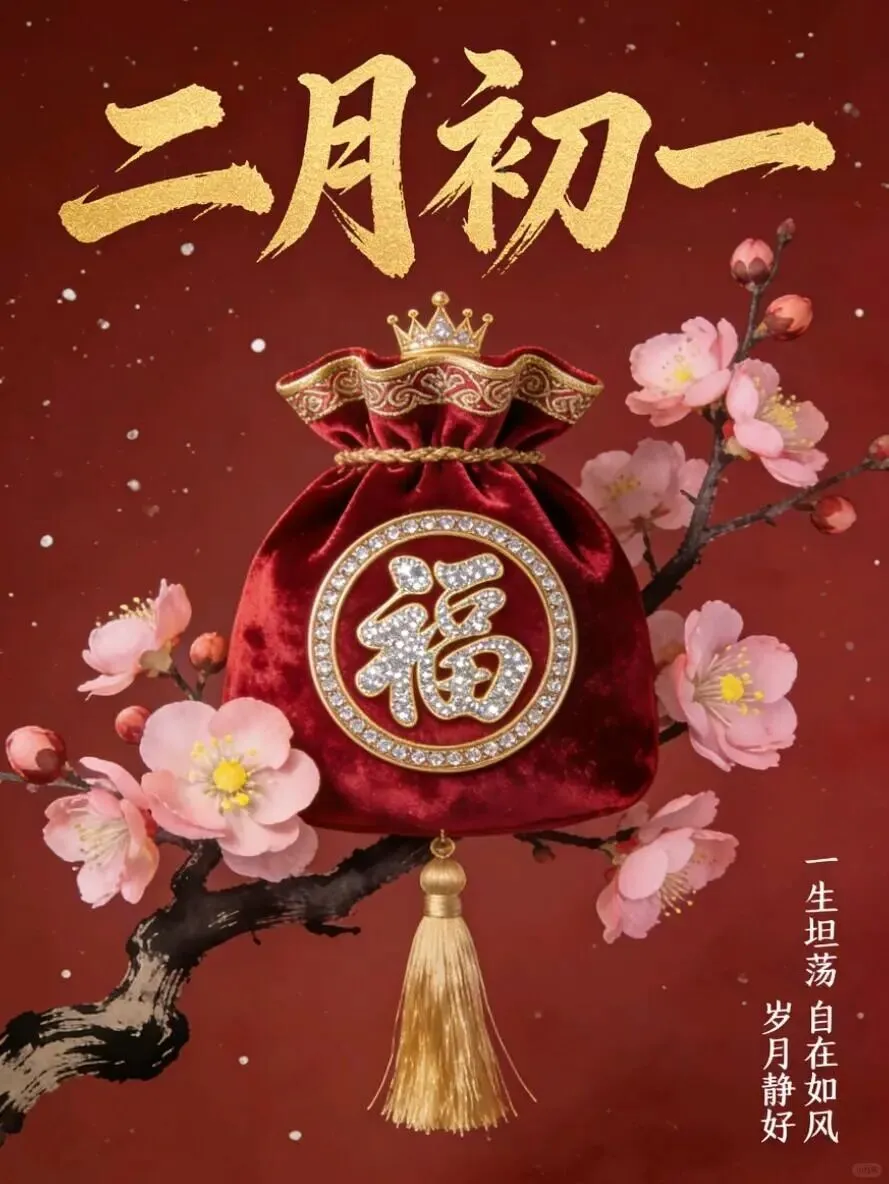 二月初一,春风带着暖意,祝你每一天都充满温柔和喜悦,吉祥安康常伴,事事顺遂,福气满盈,快乐永随。