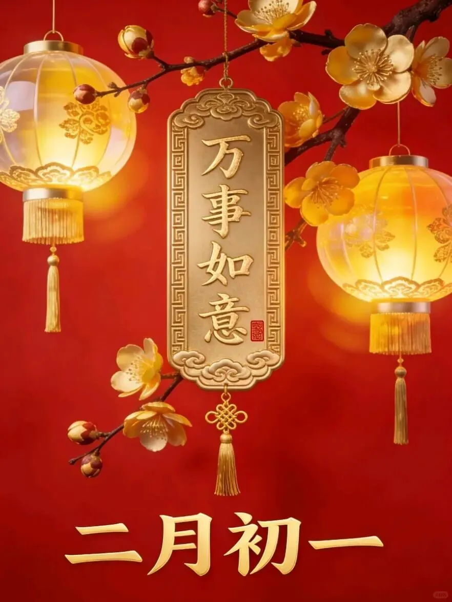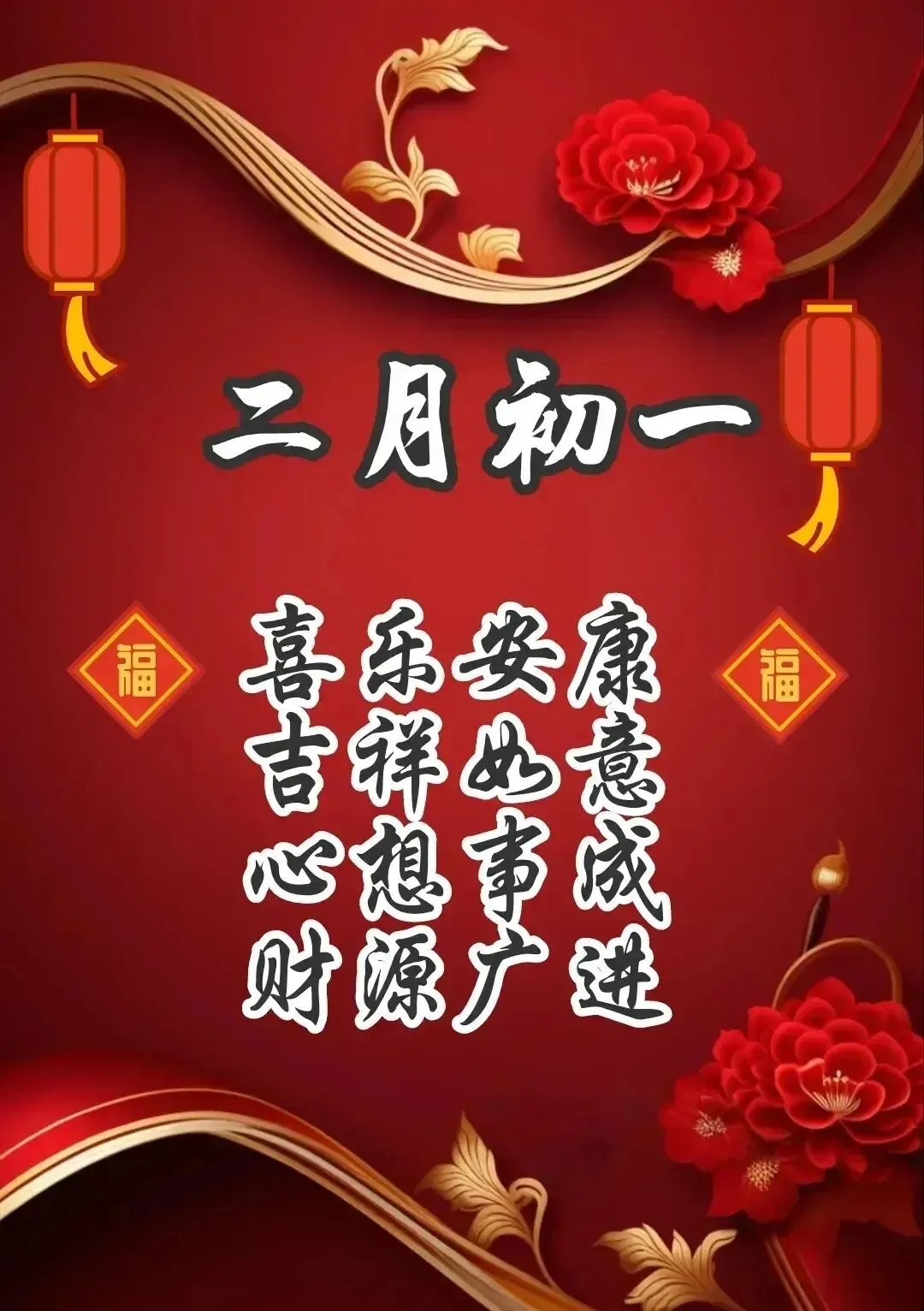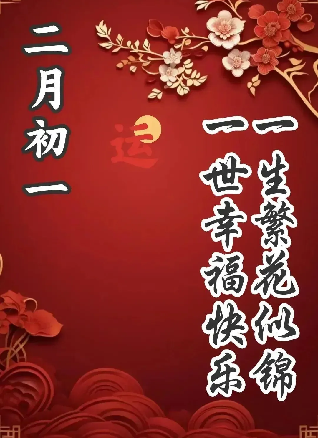 二月初一,祝你一路繁花,事事顺遂,春风有信,好运不停,梦想启航,天天都有好心情,一切顺遂,万事胜意。