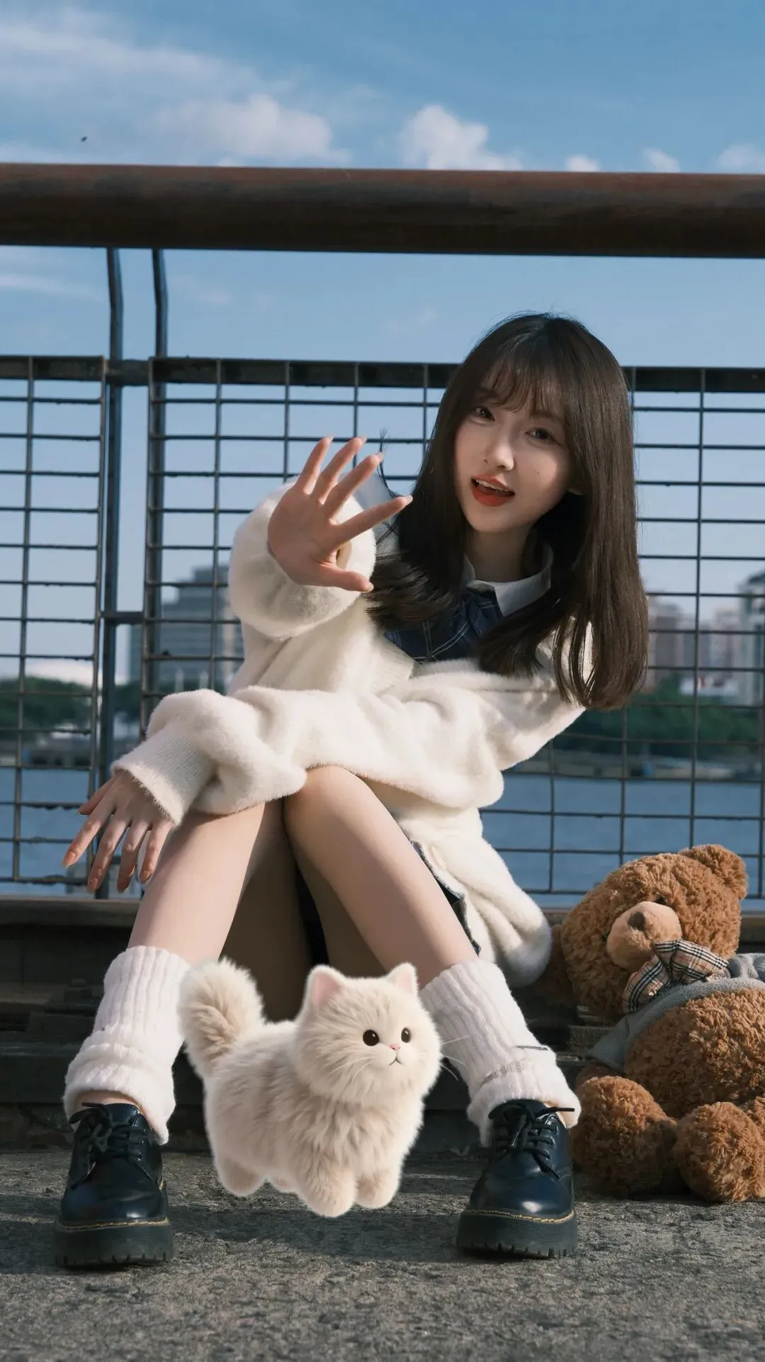 穿白色毛绒外套在海滨拍写真,总怕动作太僵硬、显刻意,撑不起元气又甜美的氛围感?这组照片覆盖护栏、台阶等多元场景,用小熊玩偶作为道具搭配灵动姿势,既能突出穿搭的软糯质感,又能解决摆拍刻意感的问题,新手直接套用就能出片。