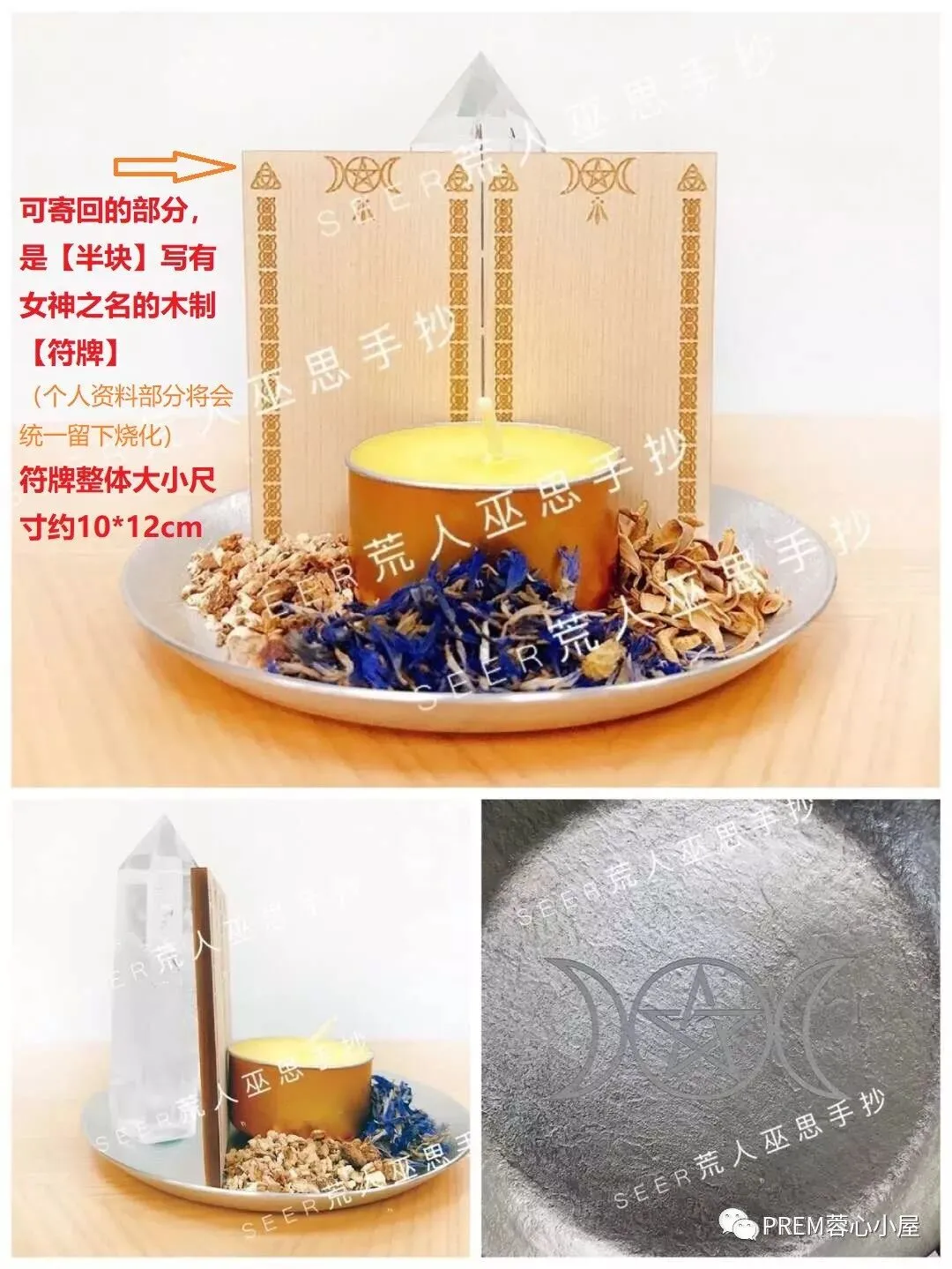 在仪式全程中,符牌都将放置在仪式盘里,作为个人能量校准以及女神能量连结的魔法道具;