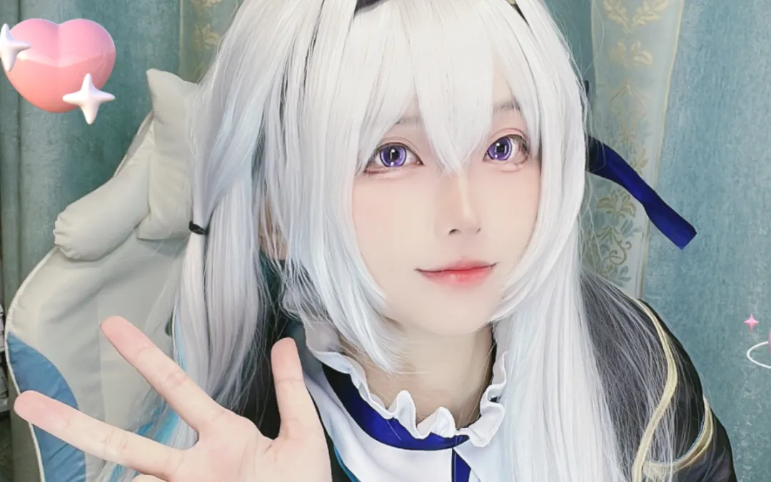 流萤_coser_抖音_001的作品以银白长发和紫色眼眸为标志,完美还原了角色"破碎感"与"梦幻感"并存的特质。妆容上采用淡紫色眼影搭配银色亮片,在光线照射下呈现星空般的渐变效果。