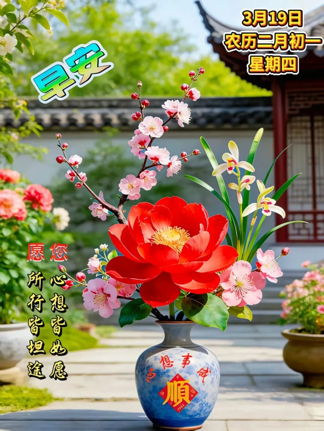 🌸🌧️☀️春花朵朵芬芳动人,心情明媚笑语声声。春雨轻洒,吉祥环绕,春光融融,幸福相随。🌸🍃春风柔美,春色满园,处处生机盎然。🌞🌸🙏