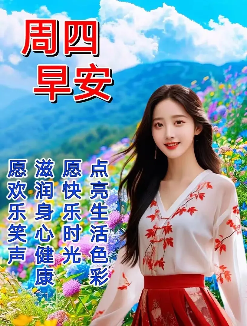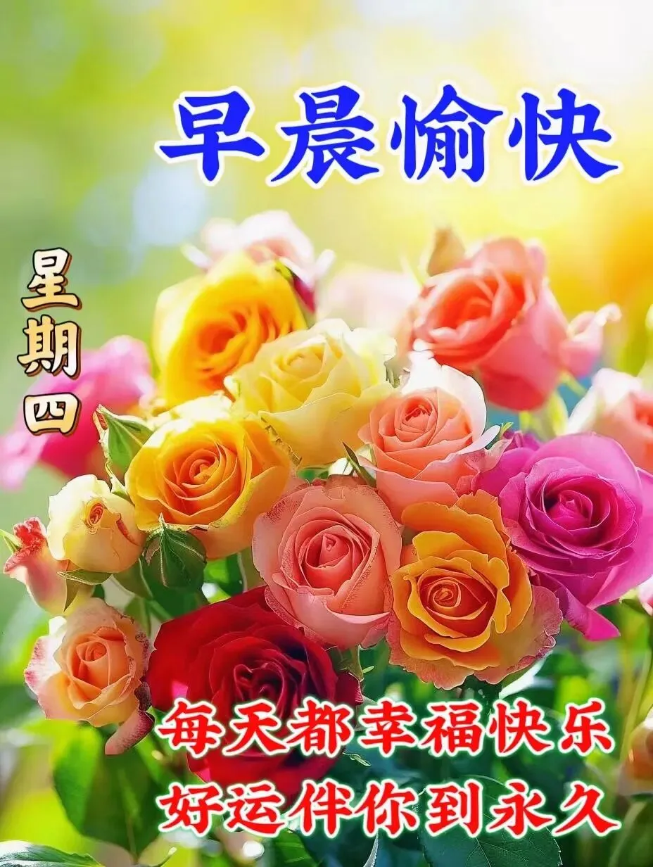🌞😊🌈晨起迎来好时光,笑容灿烂心舒畅,心情愉悦,日子如画。🌈🍀清晨送上祝福,吉祥常伴左右。愿你生命缤纷,日日如新!周四早上好!🌞🎉🙏