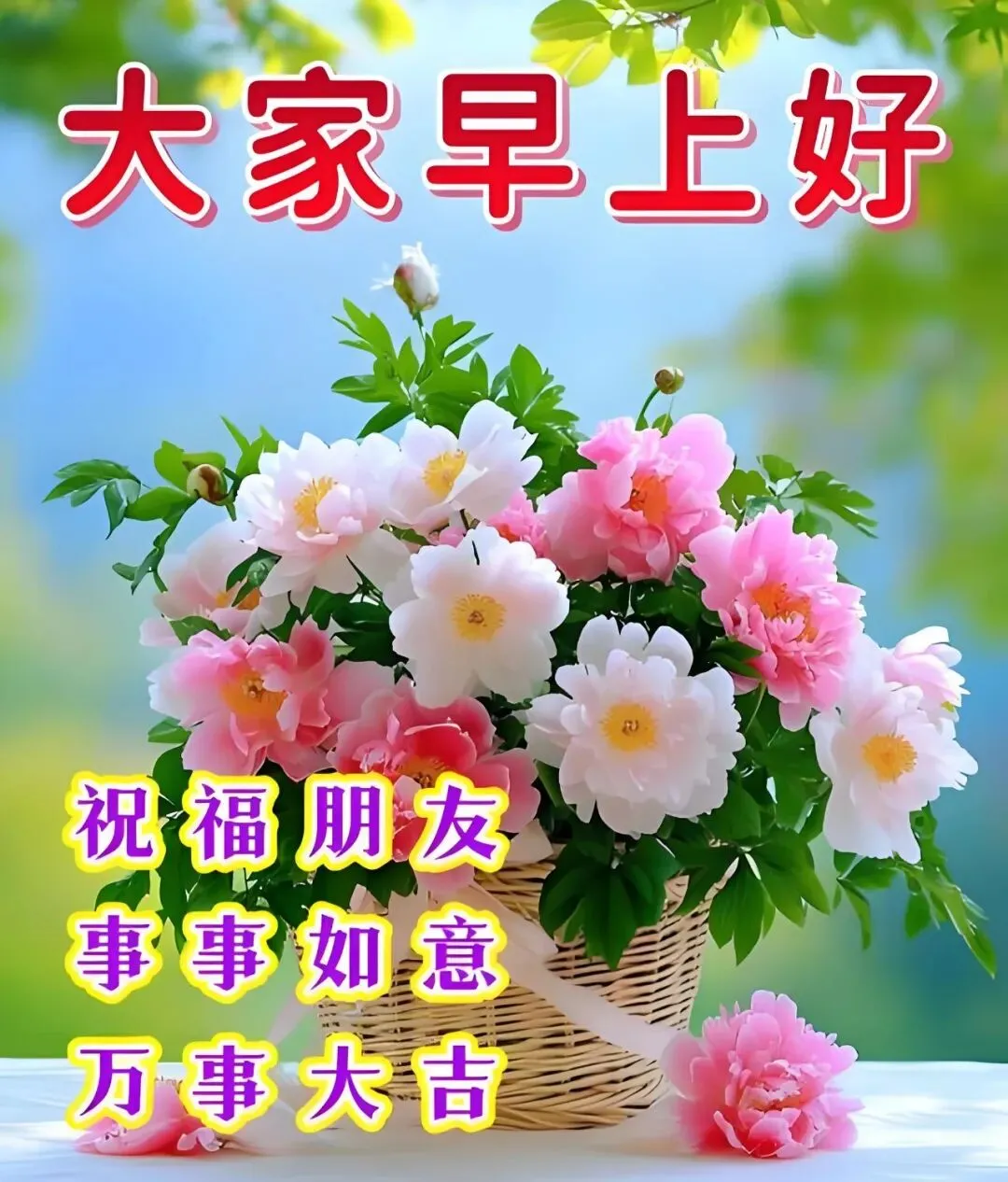1. 家人们早上好! 有一种牵挂,暖心间; 有一种陪伴,情不变; 有一种祝福,送安康; 有一种期盼,愿平安。 祝大家:健康常在,喜乐常伴,福气满满!