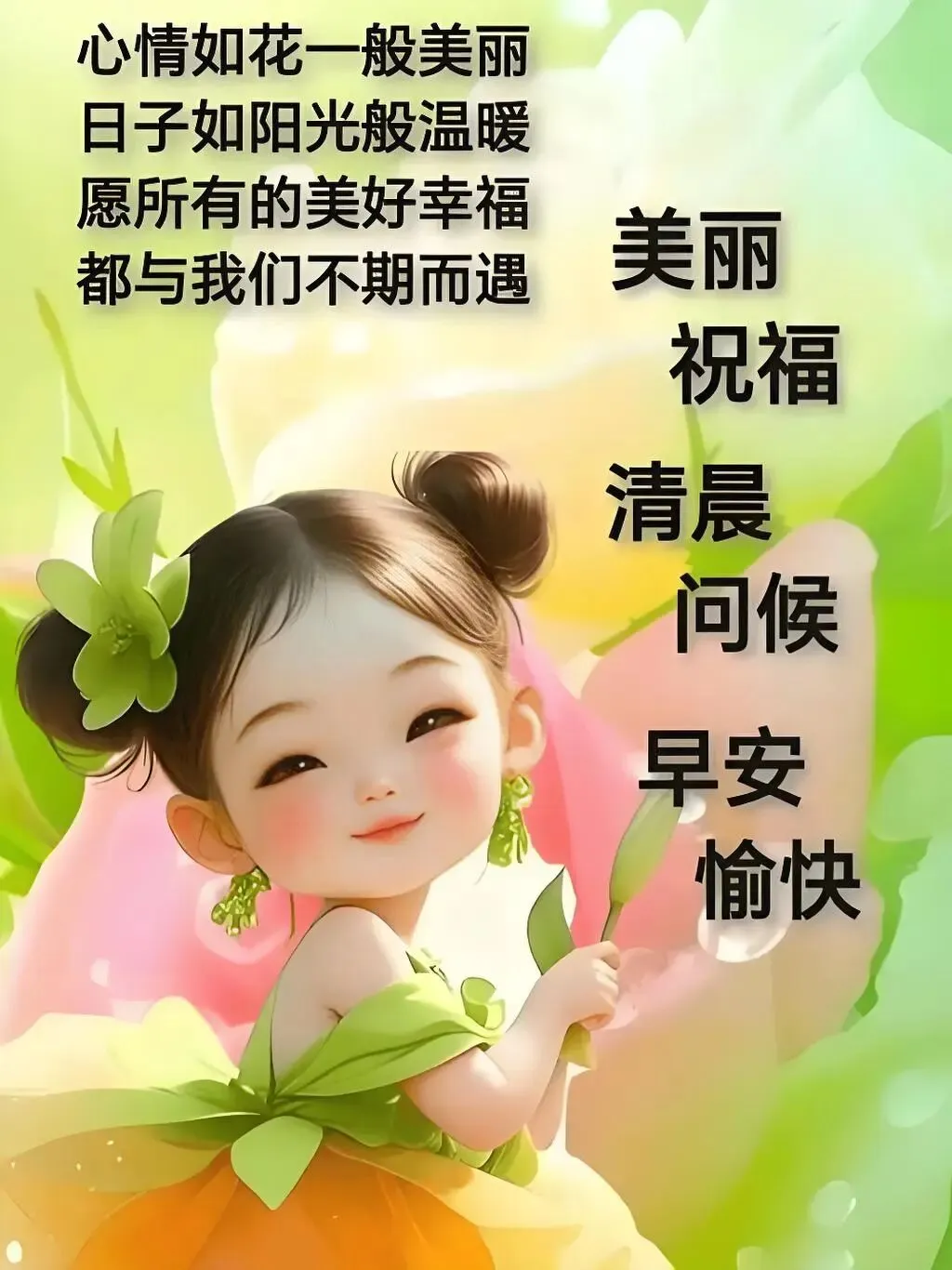 7. 愿平安,陪你走过每一天; 愿健康,伴你度过每一年; 愿快乐,绕你身边永不变; 愿幸福,与你朝夕常相伴。 早安,愿一切美好都属于你!