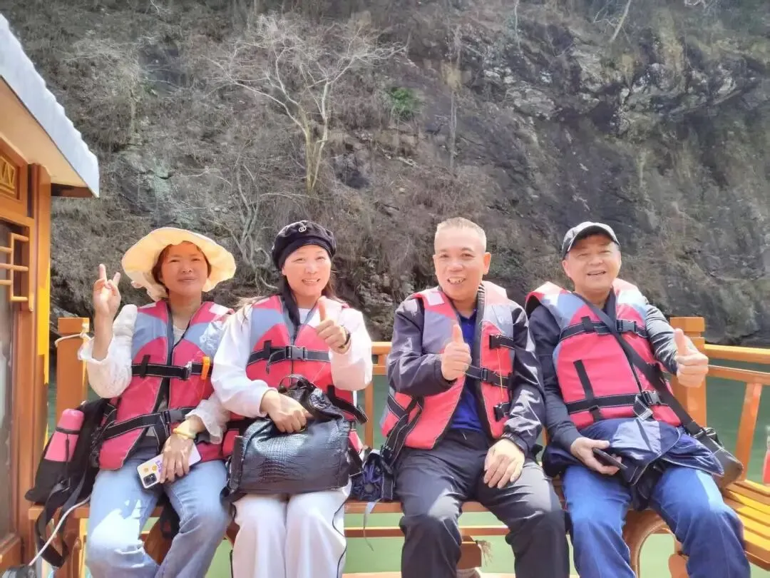 贯穿信宜市怀乡、朱砂两镇,来到黄华江虎跳峡度假区,虎跳峡峡谷长约5千米,两面石壁如削,江面狭窄,有“小三峡”之称。该地区每到杜鹃花开时节,漫山遍野,景色秀人。老师们沿着栈道徒步前行,乘坐游船于峡谷之中,放眼望去,漫山奇石,千姿百态,悬崖峭壁绵延不绝,不禁赞美大自然的鬼斧神工。