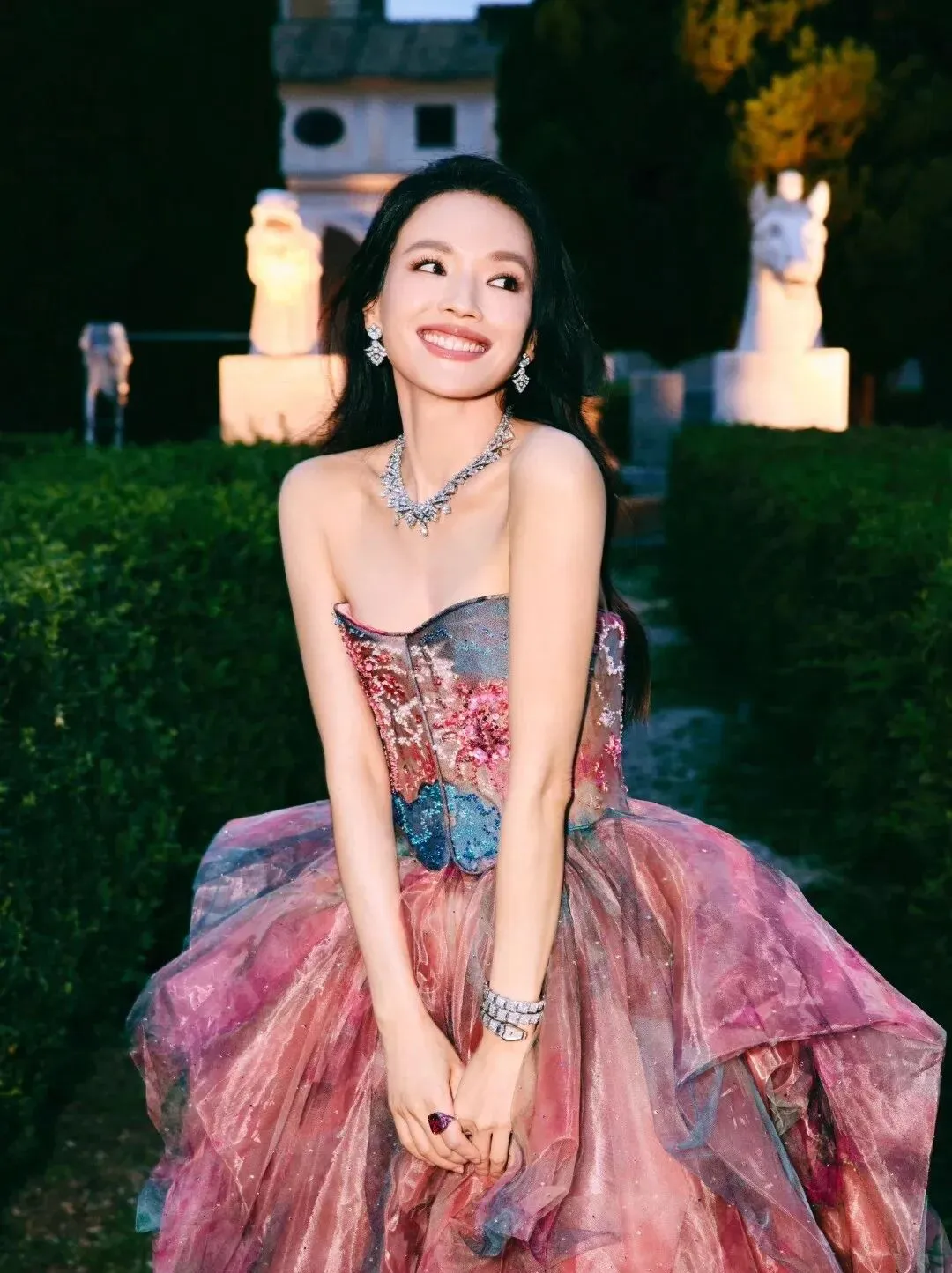 湖蓝这条裙子在照片里反光很细腻,走红毯光线充足的地方会更有层次感,并且比同色的短裙更高级。但是镜头友好并不等于现实穿起来就无敌:有人试过类似的款式,在拍照的时候看起来很有温柔知性的感觉,晚上坐地铁时静电把腿粘住后裙子贴在了地上。