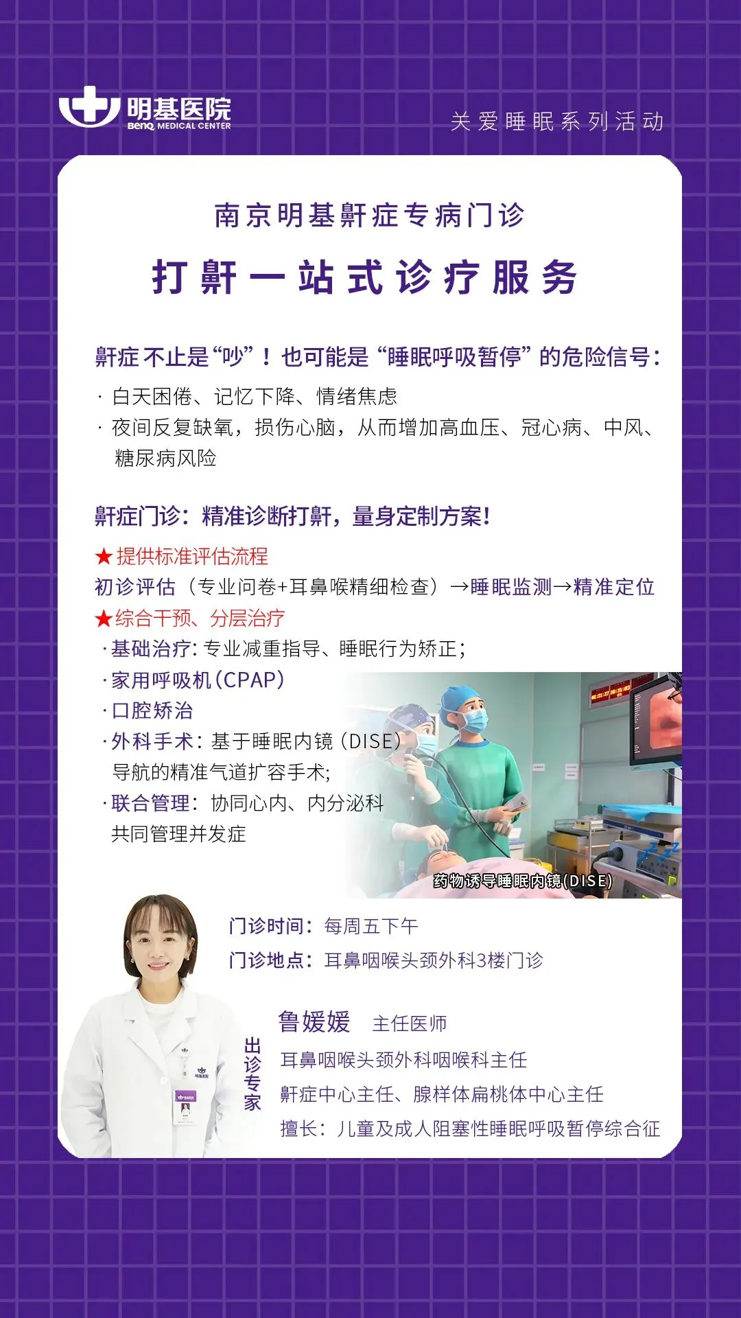 南京明基医院 鼾症专病门诊 致力于为您提供一站式诊疗!