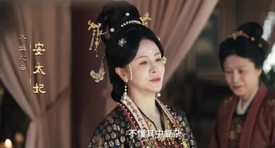 田丽饰演的安太妃,扮相华贵,姿态从容,一看就是上一届宫斗大赢家。