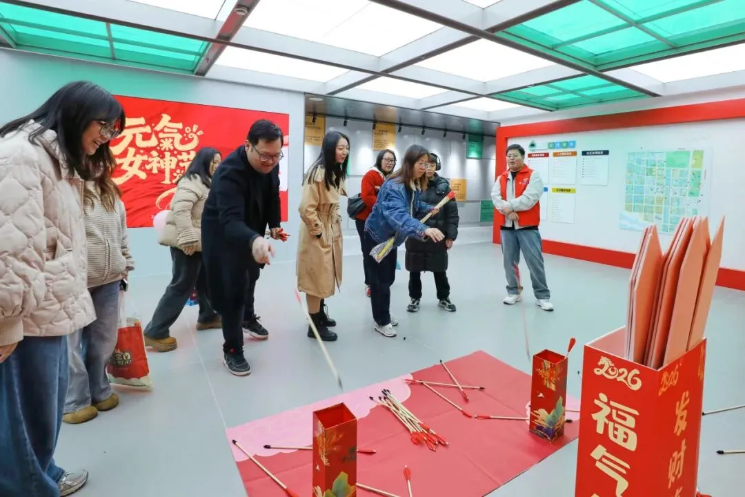 “互动游戏换大奖”区排起长队,套圈、投壶等小游戏引得阵阵欢笑,每一位女性参与者还可参与专属抽奖,幸运与笑容在园区蔓延。这不仅是节日的仪式感,更是产业社区对女性人才的真切关怀——让每一位奋斗在园区的“她”,都能感受到被看见、被珍视的温暖。