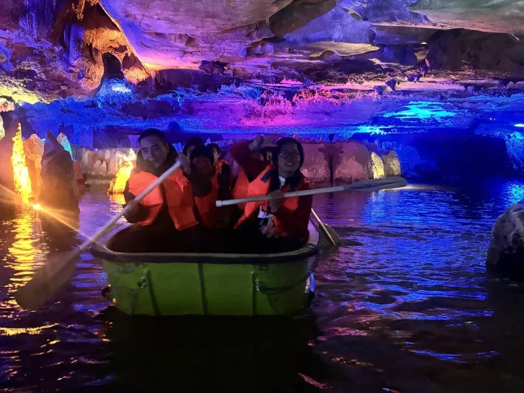 在宁化天鹅洞,大家乘船穿行于千米地下河,近距离触摸 “神州第一地质奇观” 的神奇。近百个风貌各异的溶洞中,40 米高的石瀑气势磅礴,精巧的石珊瑚、石松参天的 “山峰”、玉树倒影的 “天鹅湖” 相映成趣,流光溢彩的钟乳石让大家目不暇接,纷纷驻足拍照留念,感叹大自然的鬼斧神工。