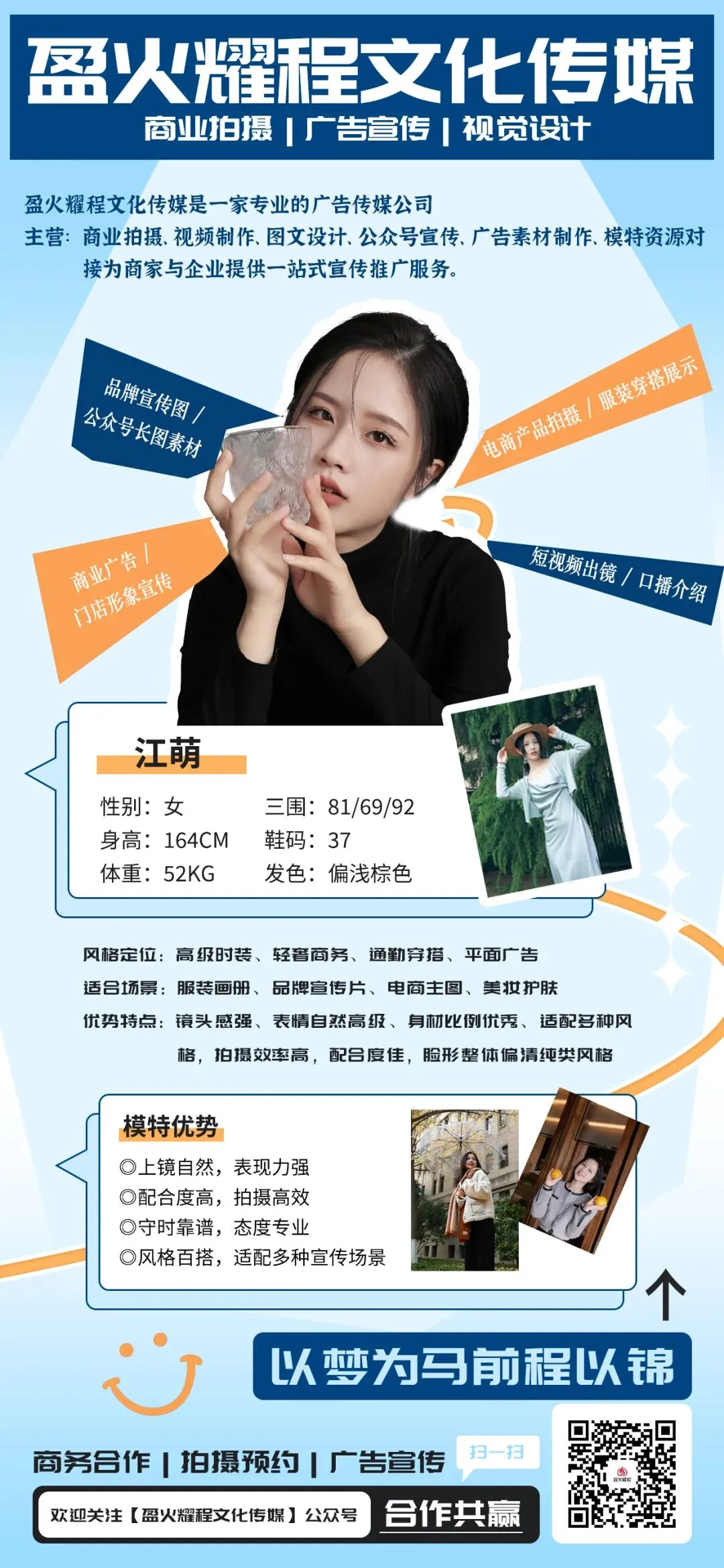 【模特推荐】江萌 | 专业商业拍摄,赋能品牌视觉价值 ——盈火耀程文化传媒合作资源