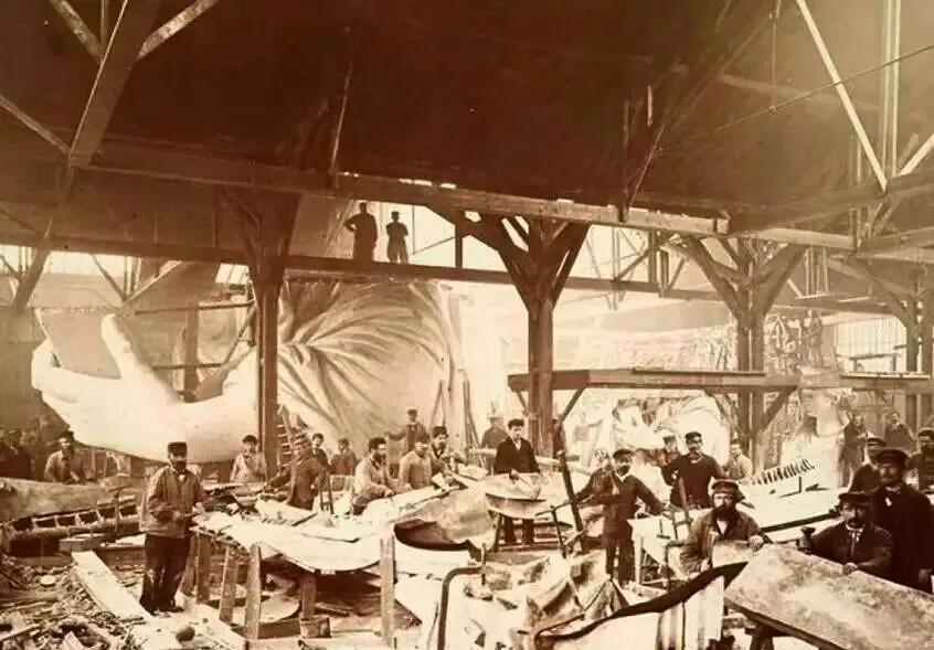 他们采用的是一种叫“repoussé”的古老技艺:在木模上冷压铜板,逐渐敲打出女神的形态。几个月后,雕像逐渐成形,高耸入云,一度成为巴黎最高的纪念碑。巴黎人好奇地涌入工厂参观,媒体争相报道这个奇特的建筑工地。