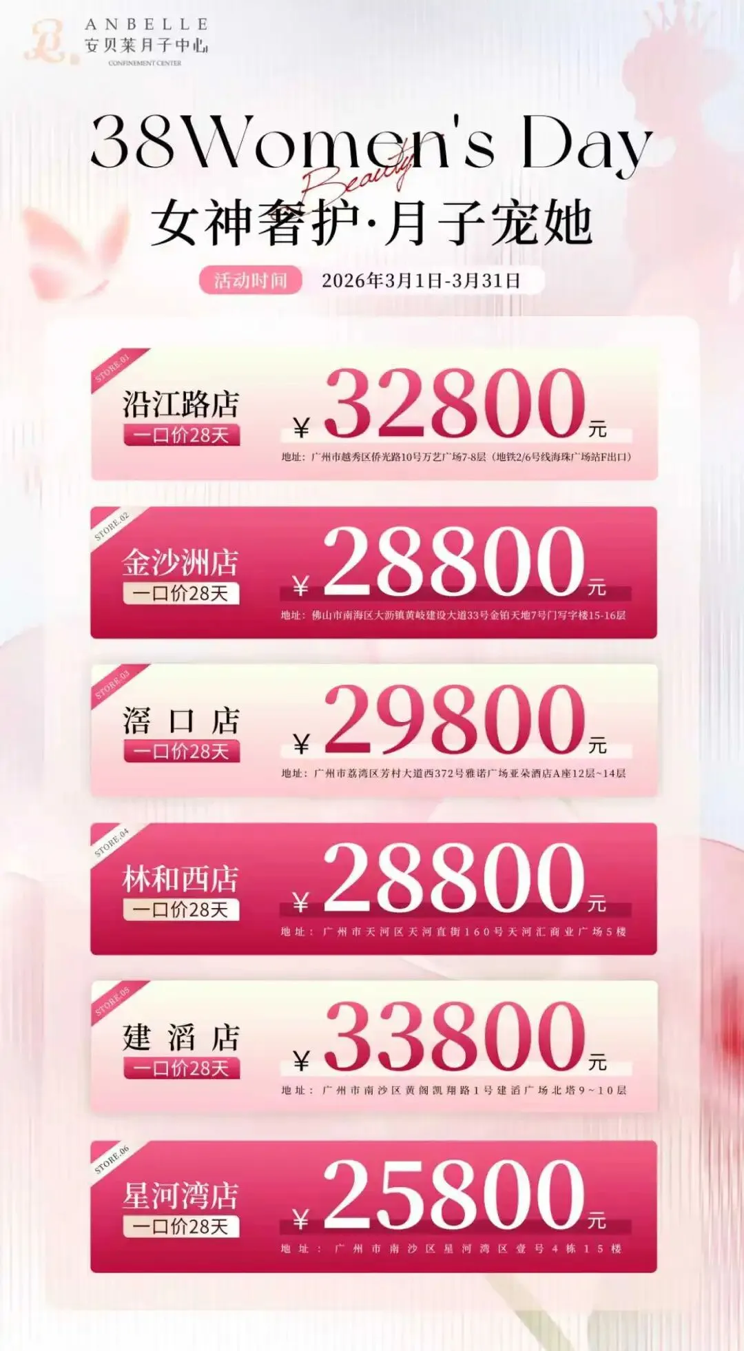探店好礼【广州6店】安贝莱月子中心,女神奢护·月子宠她,一口价28天!签单尊享,再加送1680孕婴童专属大礼包!可预约探店!