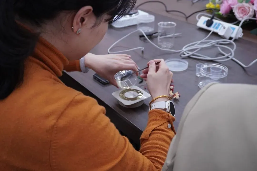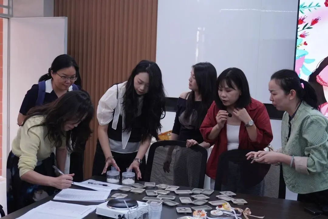 老师们全神贯注地调配属于自己的气味配方,或者彼此交流灵感与创意心得。在这段于指尖静静流淌的温柔时光里,日常繁忙教学工作所带来的疲惫与压力,不知不觉间悄然消散,取而代之的是一份亲手创造的满足与宁静的愉悦。