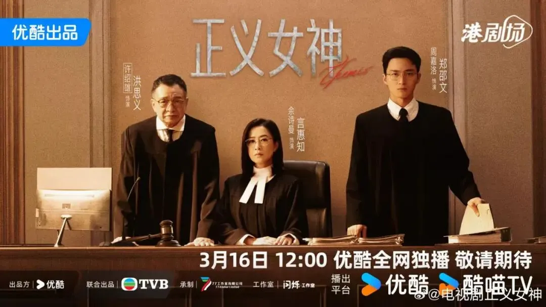 由钟澍佳执导,佘诗曼、谭耀文、陈炜、周嘉洛、许绍雄(该剧为许绍雄遗作)领衔主演的香港剧情剧《正义女神》3月16日在优酷和TVB翡翠台播出。该剧以少年法庭为背景,主要讲述了高等法院法官言惠知(佘诗曼饰)调查一宗14岁少年高成彬涉嫌导致6岁男童坠亡案件时,发现其多次犯罪却因年龄未被追责,遂主动降职至少年法庭裁判官,致力于通过引导教育帮助问题少年重塑价值观的故事。