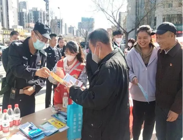 “您好,这是《中华人民共和国民法典》您可以拿回家看看…”;“这是《中华人民共和国妇女权益保障法》…”活动现场,司法所工作人员及普法志愿者们身着红马甲,摆放好宣传展架,向在场的群众宣传与群众生活息息相关的法律知识和民族团结知识。彩虹湾社区石榴籽警务室的民警同步开展了反诈知识、金融诈骗、垃圾分类、普法教育等宣传活动,向现场群众讲解维权法律知识,并耐心解答群众关于法律方面的咨询和问题。