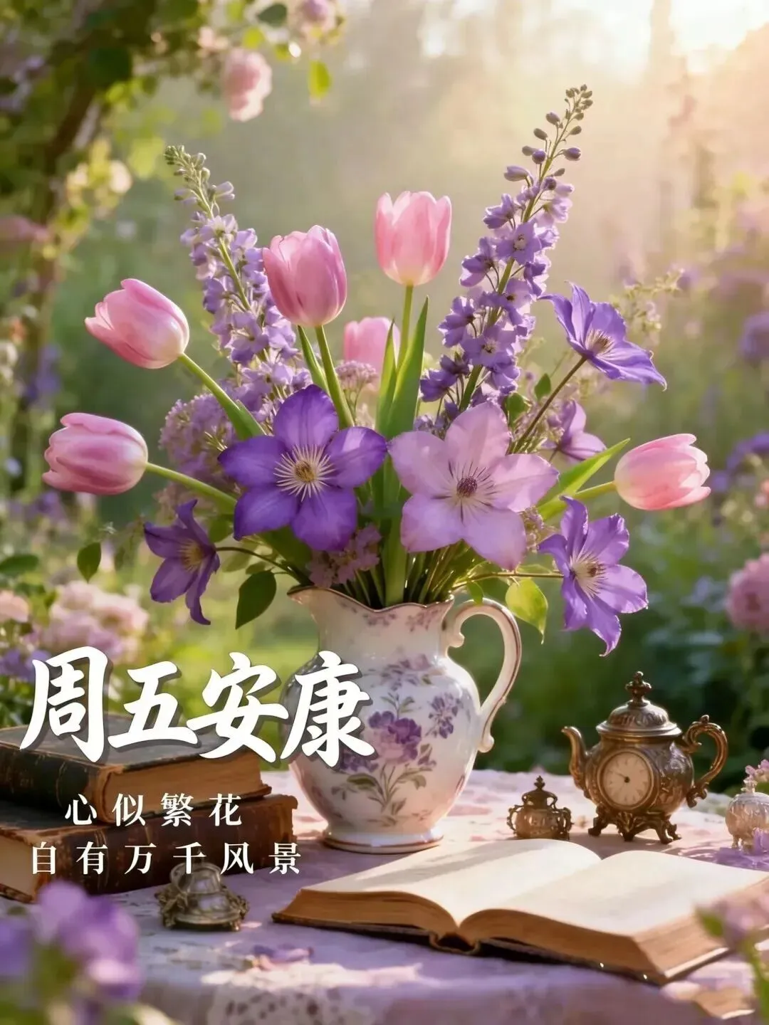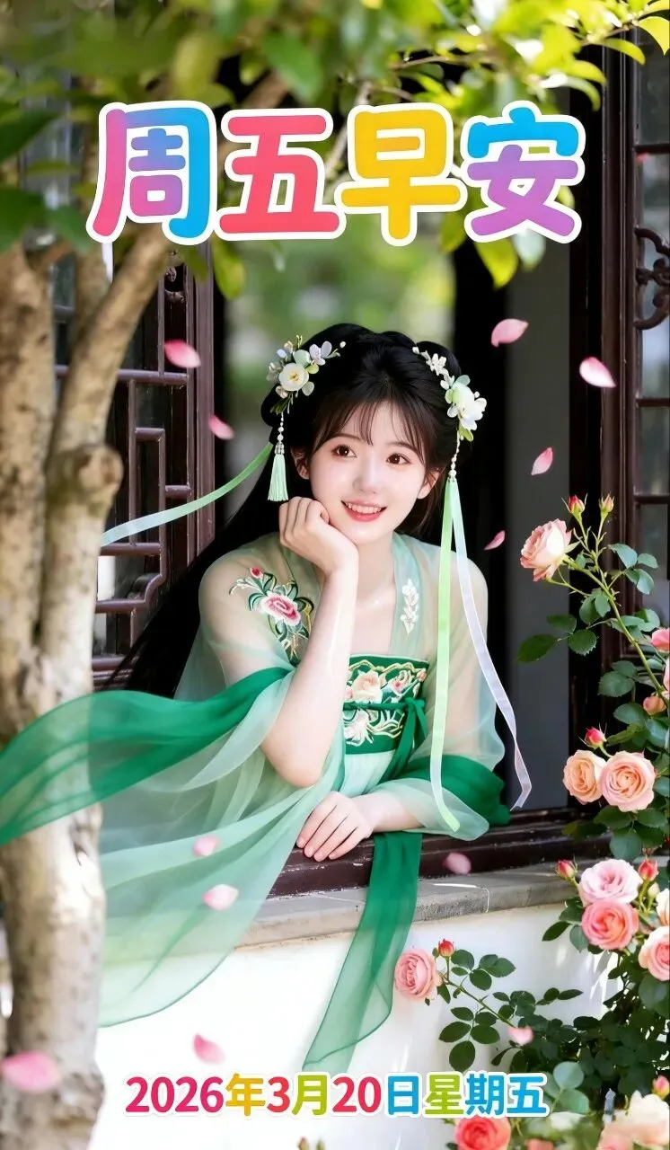 周五早安🌸春风十里,不如春分有你,早安周五🌿愿时光温柔待你,岁月慈悲护你,烦恼清零,快乐满盈,工作顺顺利利,生活甜甜蜜蜜,四季安康,永远被幸福包围☀️
