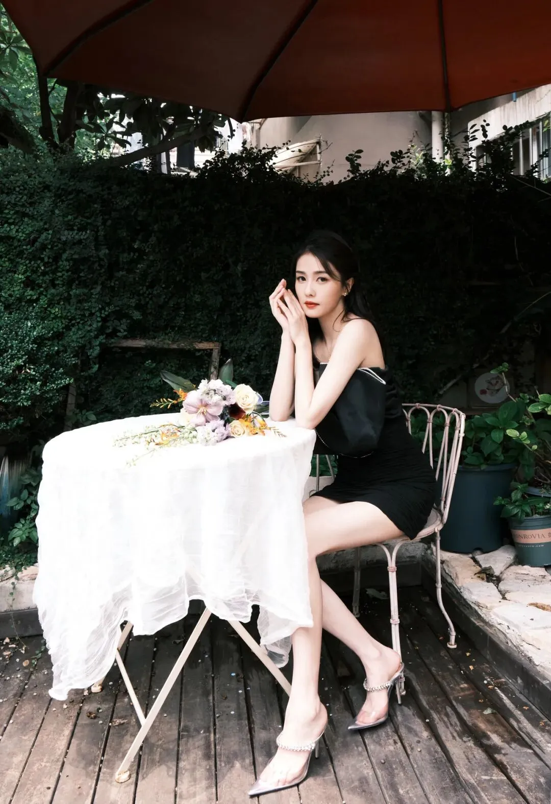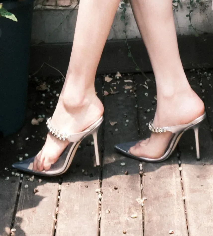 当前位置:首页>美女资讯>长腿女神|白鹿黑色抹胸包臀短裙大长腿配尖头透明半包细高跟凉拖