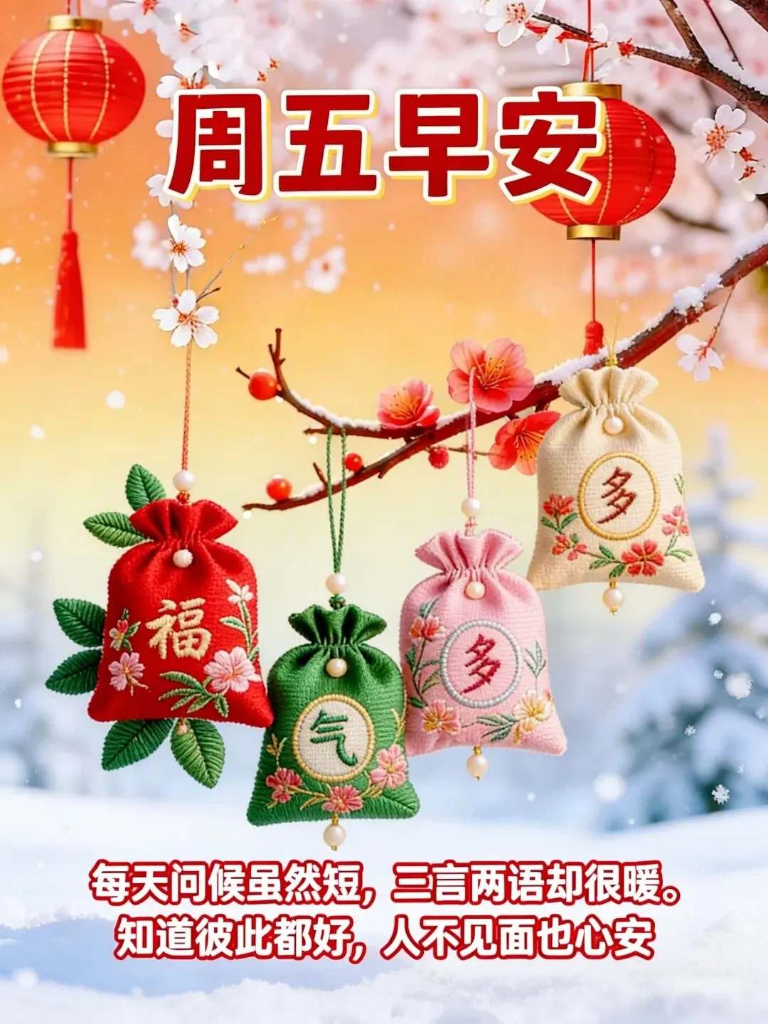 🍀好友从来不曾忘,一早暖心送吉祥。🌅心中牵挂如丝线,情深意长永绵延。💖清晨空气沁心脾,微信问候暖心房。🌊愿君身健心欢畅,开开心心不显老!🌷今日周五,早上好!💝