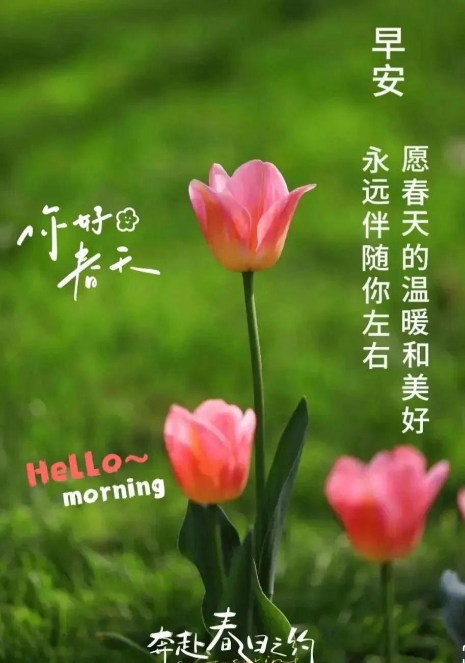 春季来到春分暖,花艳山秀鸟儿唱。生机盎然万物荣,勤奋致富求发展。愿你心中阳光灿,惠民政策好运转。事业花开正红艳,一生幸福多安康。早安,各位。