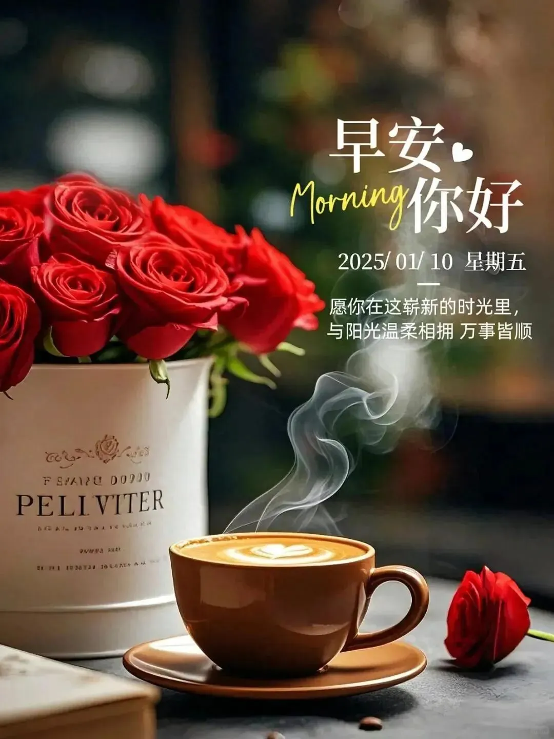余生时间贵,千万别浪费,微笑每一天,童心永不退,不管多少岁,快乐放首位,平安健康随,开心活百岁。早上好!🌹🍅🤝❤️☕️🎉