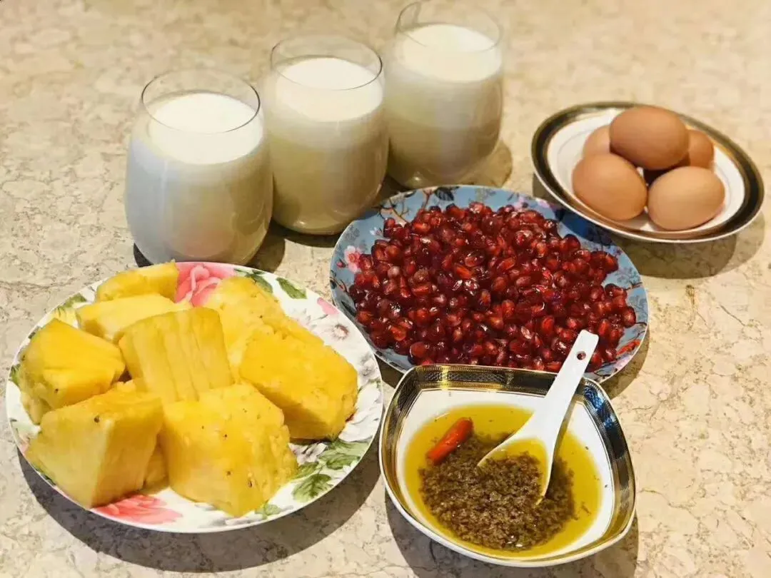 早餐,不管再早再晚起,一定不会少一杯幸福餐(和各种新鲜蔬菜搅拌在一起,每天换一种口味)离不开鸡蛋、椰子油葡萄籽油、坚果、水果、五神,蛋白粉、净水或牛奶豆奶酸奶。