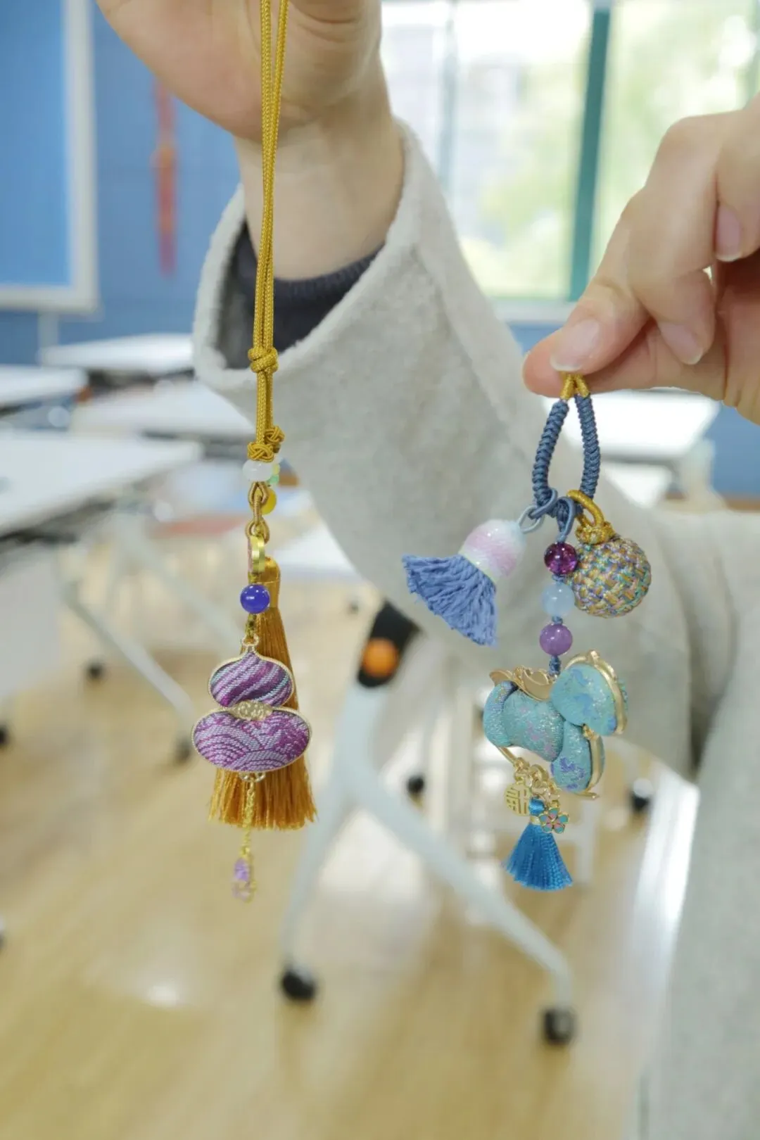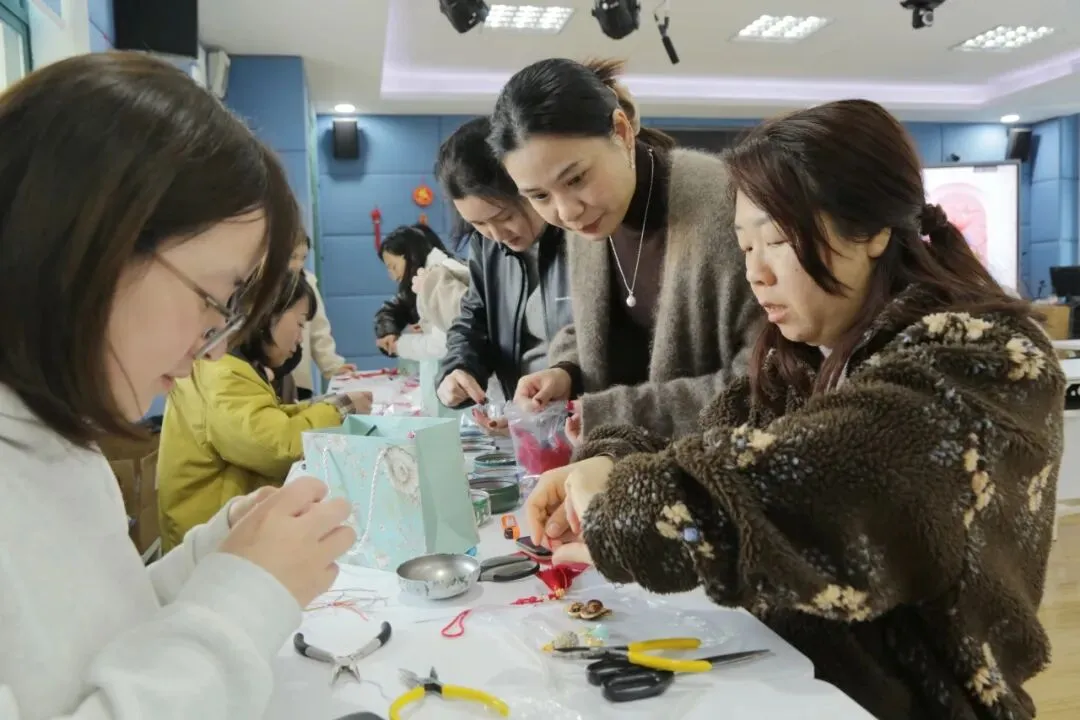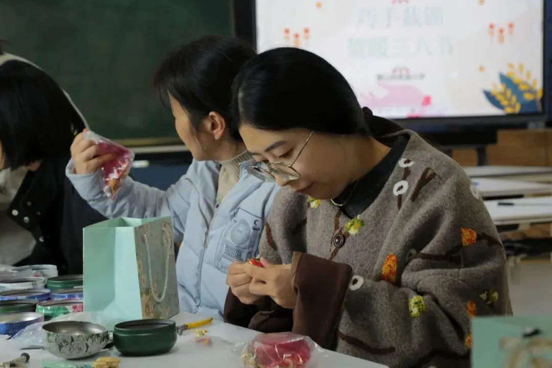 精致的挂件不仅承载着传统宋锦的雅致韵味,更凝聚着老师们的巧思与心意,成为这个妇女节最特别的纪念。