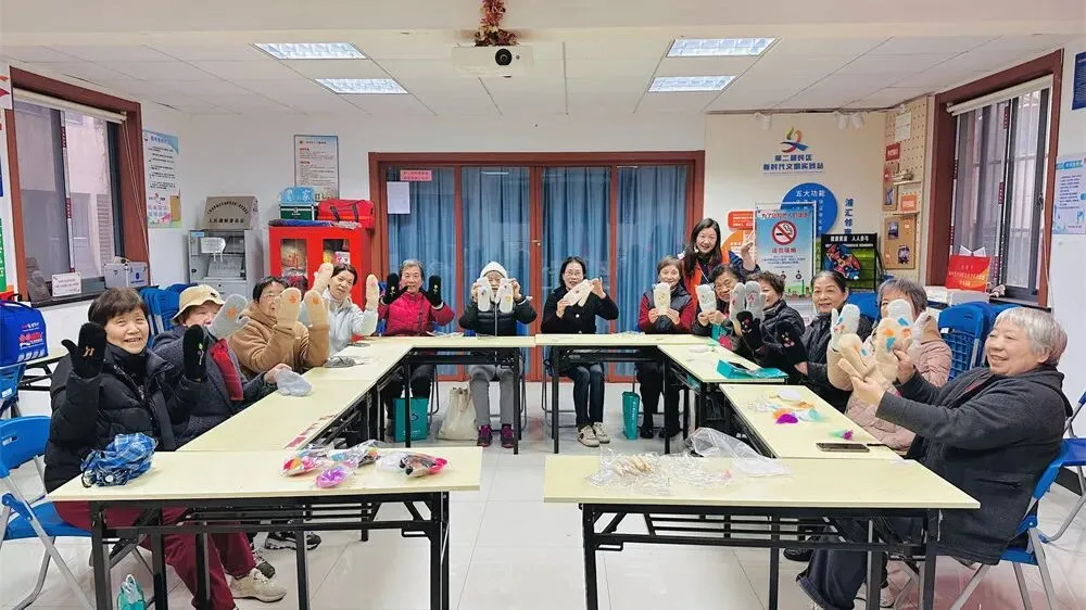 女神月限定!为了让长者们在春日里收获专属快乐与指尖活力,打浦桥街道综老把「春风如你 熠熠芳华——羊毛毡手套戳戳乐」搬进了中心和社区。