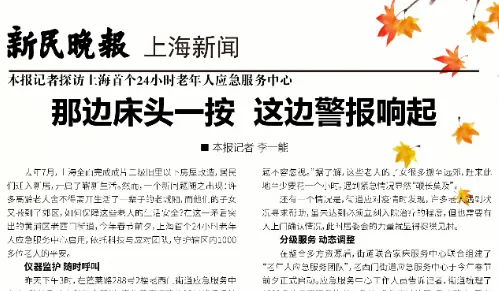 快乐颐亮相《新民晚报》:应急服务中心实时保障居家安全