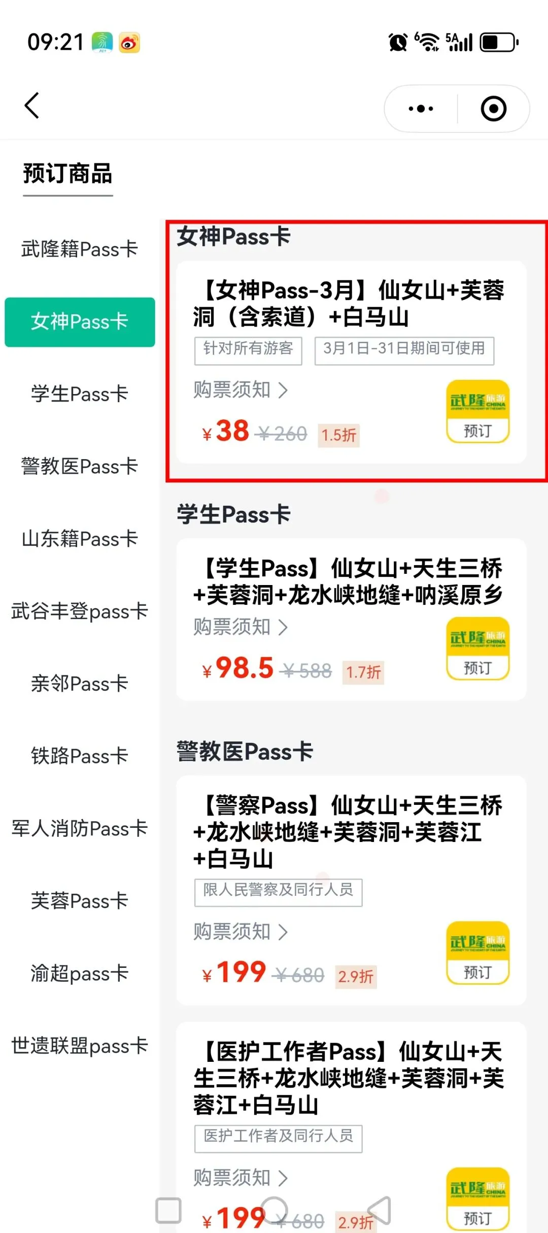 ✅ 购票渠道:微信/支付宝搜索“武隆景区官方平台”小程序,首页进入“PASS 卡专区” 一键下单。