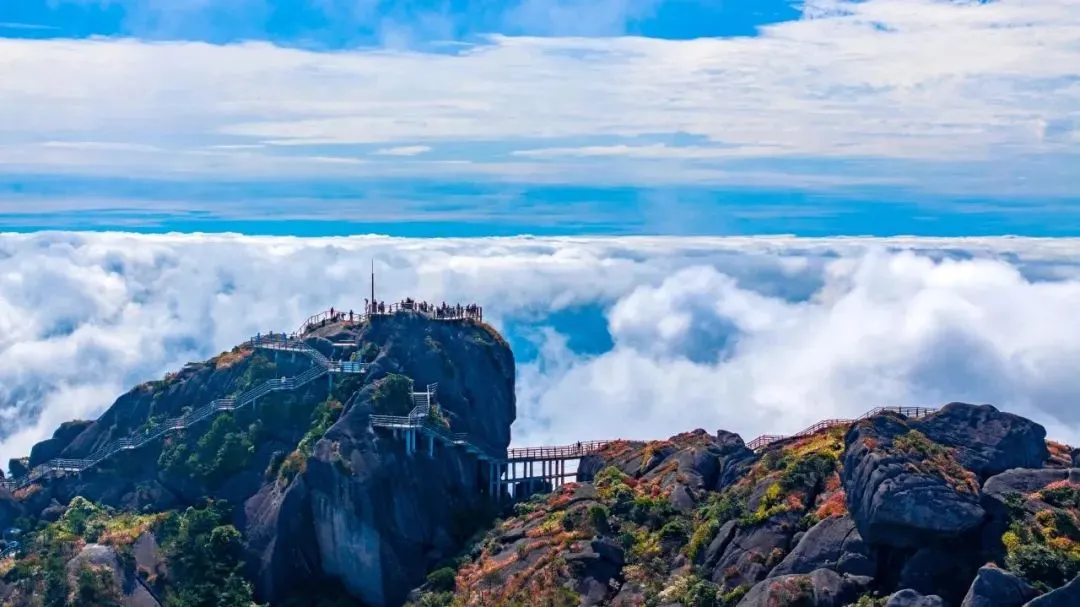 攀登“八闽观日第一峰”,极目远眺,峰峦云海、蓝天灿日交相辉映,仿佛身置天上人间!