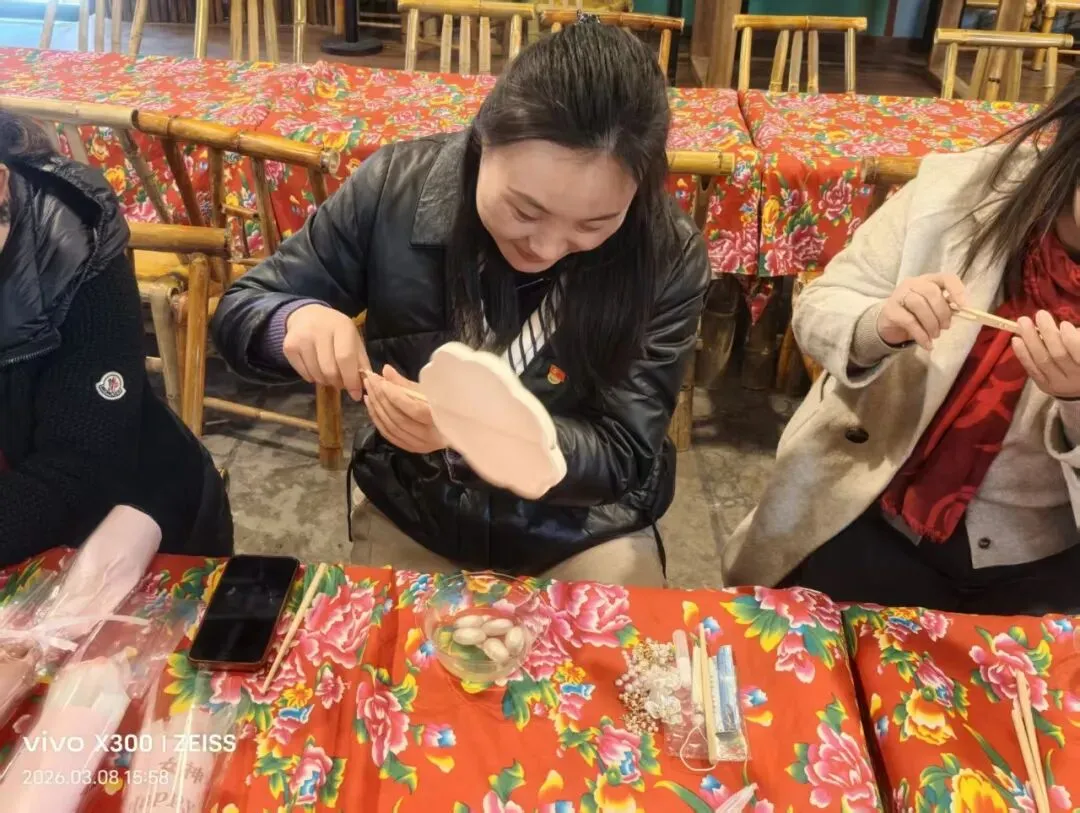 金台企业服务中心于第116个“三八”国际妇女节当日,精心组织会员企业女性同胞,以党建为引领开展“巾帼心向党,匠心绽芳华”女神节非遗蚕丝扇手工制作活动。