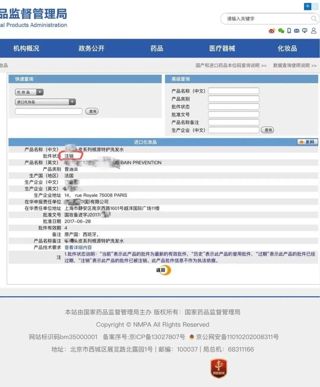 特别提醒:查询备案文号后,注意核对产品名称、批件状态、产品技术要求等相关内容,如与加贴的中文标签不一致,基本可辨别真伪。