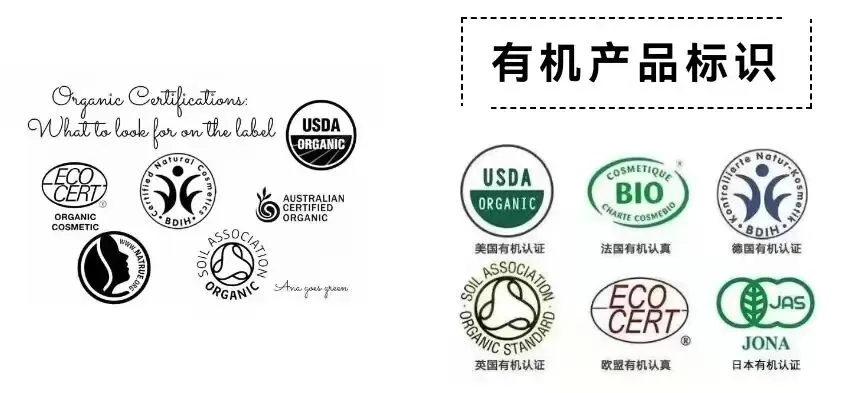 因为全球无统一的有机认证标准,所以每个国家都有自己的有机认证系统,为此标识也不同,且各国化妆品的有机含量也略有不同。