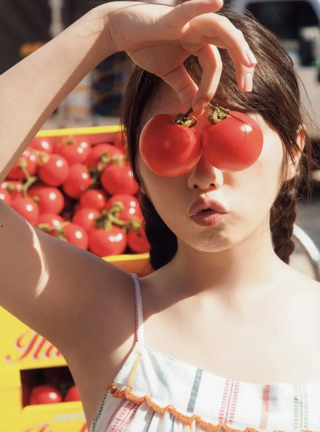 在西西里岛,与田祐希仿佛回到了童年的故乡。她从小在福冈的乡下长大,是个经常海里捉鱼、山中爬树的活泼姑娘 。所以你能看到,她毫不犹豫地从一个高达10米的海边悬崖上一跃而下,像一尾灵动的鱼潜入碧蓝的海水中 。她会穿着红色的波点比基尼,在清澈见底的海里游泳;也会在乡间的农场里掏鸡窝、骑小毛驴、甚至熟练地“遛”起山羊——那是她儿时最熟悉的宠物 。